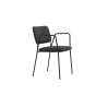 Rám ze dřeva a oceli. Tvarovaná pěna CMHR. Čalouněné látkou nebo kůží. Kůže podle vzorníku barev. 6a. Chromovaný (chrom III) nebo černě lakovaný ocelový rám. Plastová noha.