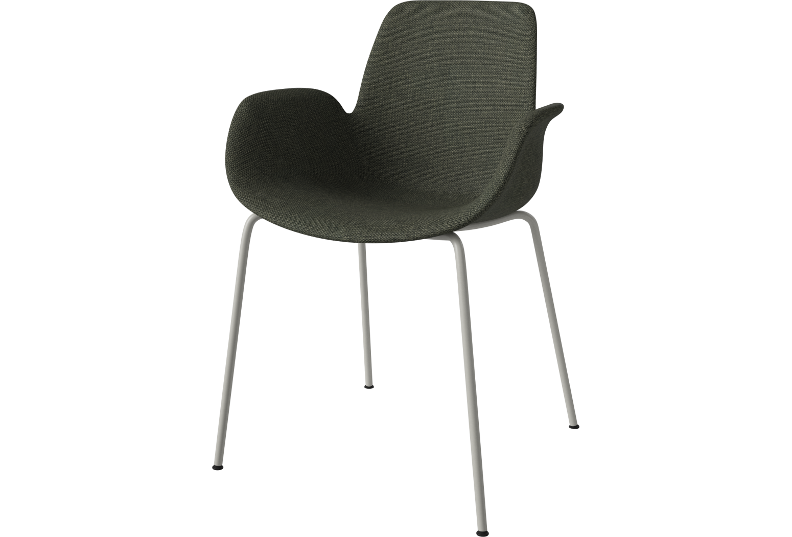 Čalouněná verze. Seed je všestranná řada židlí navržených Hansem Thyge & Co., které lze kombinovat a kombinovat – k dispozici jako běžná židle, křeslo a ve venkovní verzi. Skořepina je vytvarována do poetické podoby, je vyrobena výhradně z recyklovaných plastů a navržena tak, aby vás objala výjimečným pohodlím a podporou.