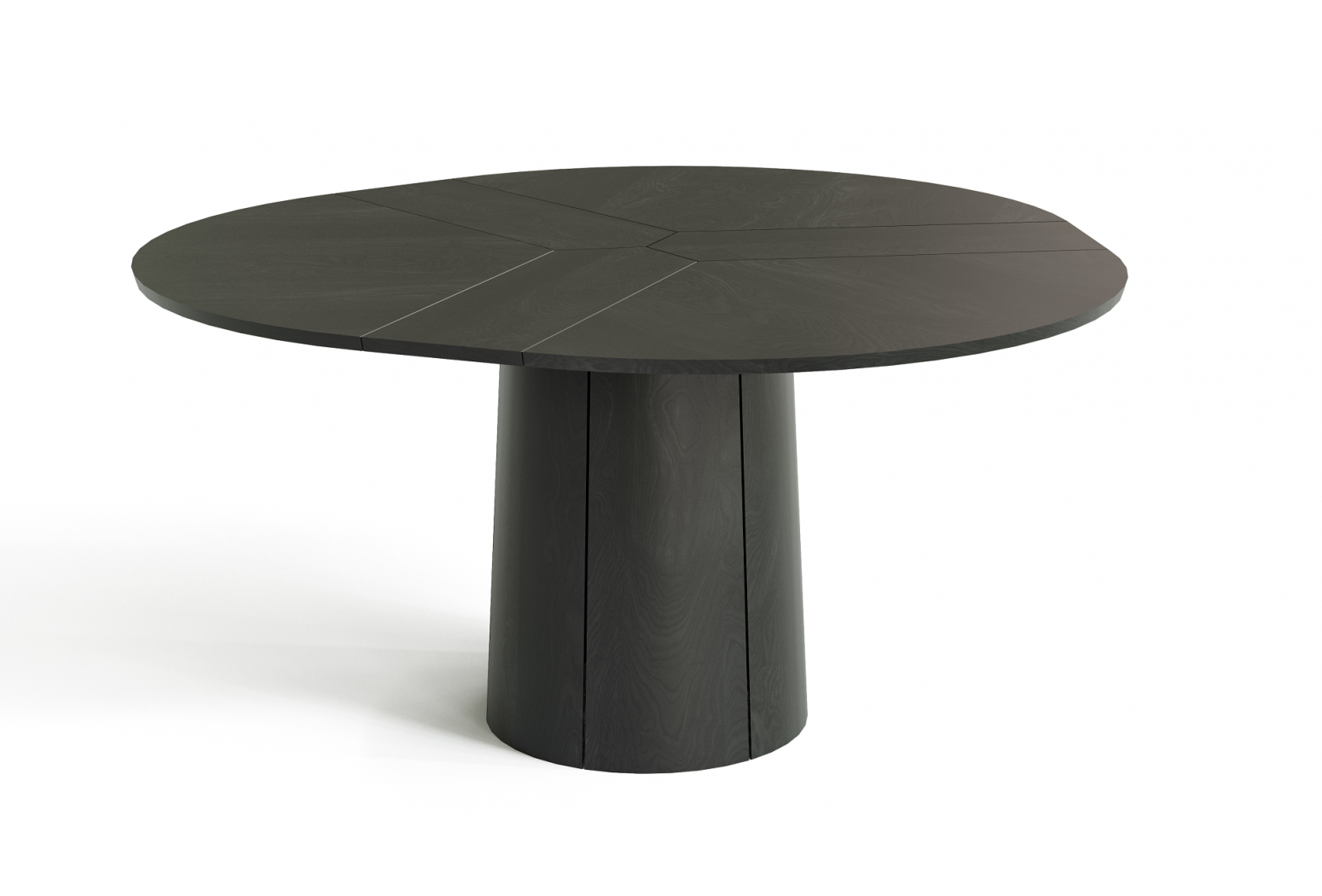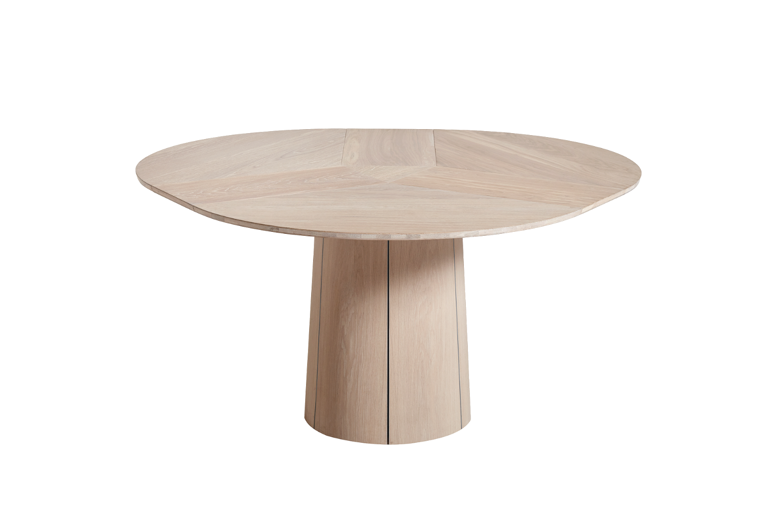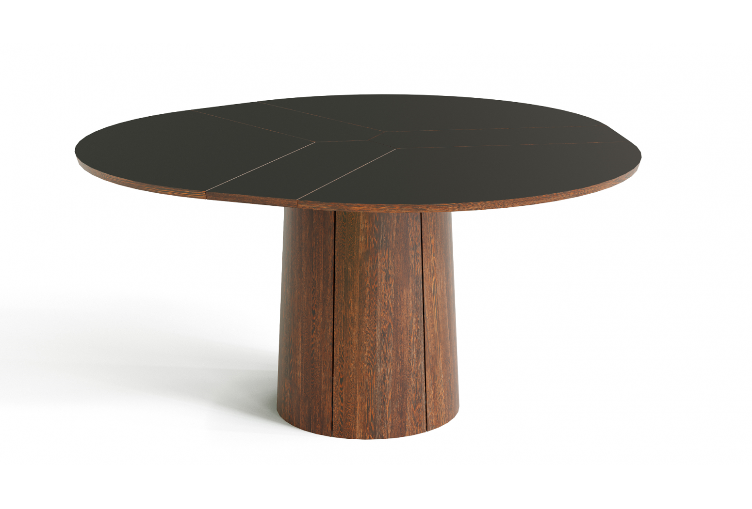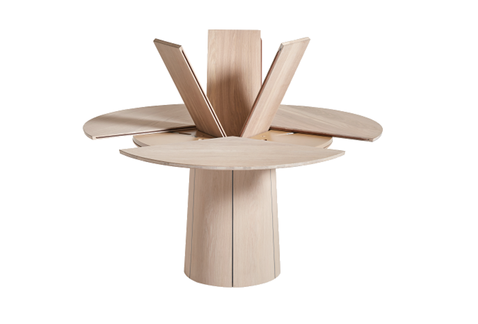 Kulatý rozkládací stůl na centrální podnoži. Unikátní systém rozložení s patentovaným mechanismem. Jídelní stůl Skovby #33 je vybaven unikátním systémem roztahování. Otáčením otočného talíře pod deskou stolu se tři křídla synchronně pohybují do polohy, která uvolňuje místo pro výsuvné křídla v základně. Při lehkém tlaku se vysouvací listy rozvinou pomocí pružiny umístěné pod trojúhelníkem uprostřed stolu.