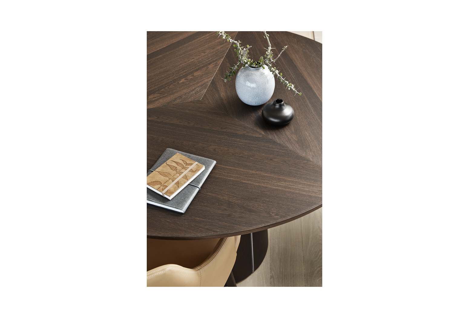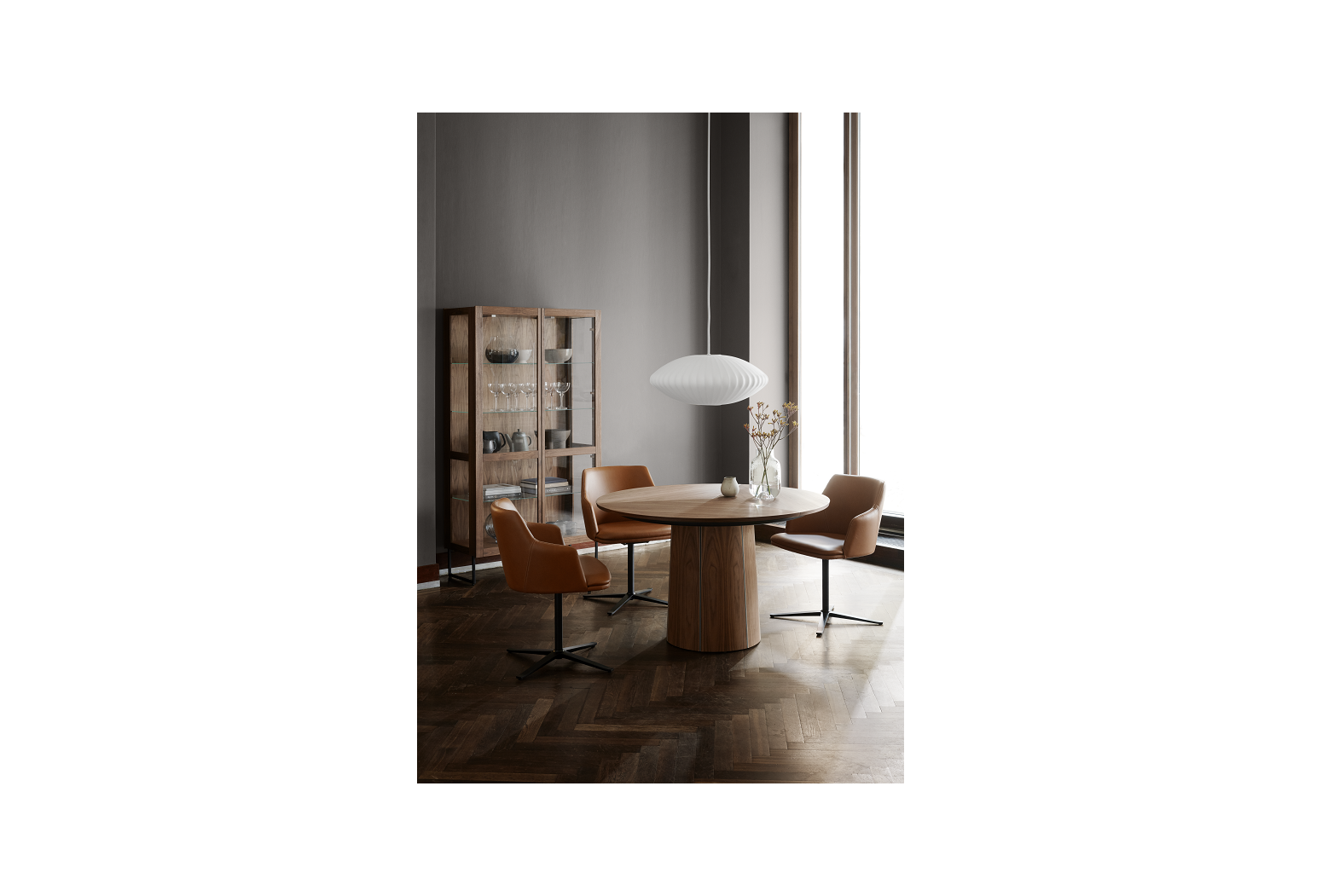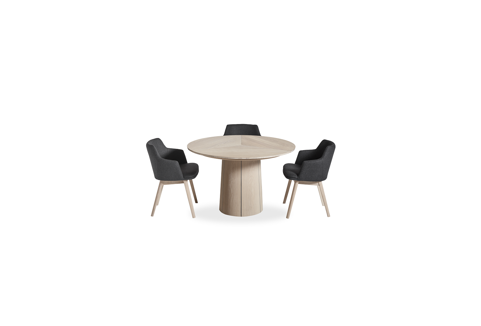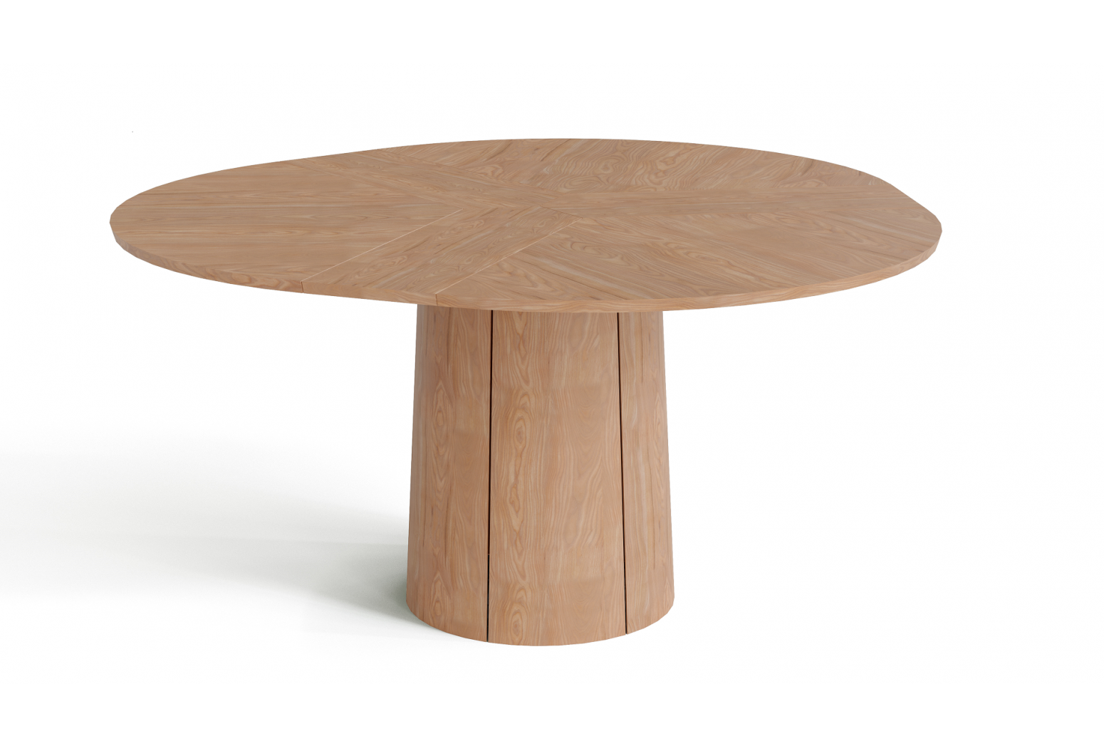 Kulatý rozkládací stůl na centrální podnoži. Unikátní systém rozložení s patentovaným mechanismem. Jídelní stůl Skovby #33 je vybaven unikátním systémem roztahování. Otáčením otočného talíře pod deskou stolu se tři křídla synchronně pohybují do polohy, která uvolňuje místo pro výsuvné křídla v základně. Při lehkém tlaku se vysouvací listy rozvinou pomocí pružiny umístěné pod trojúhelníkem uprostřed stolu.