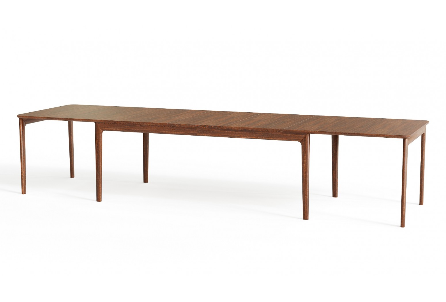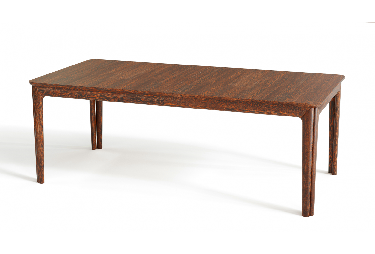 Stůl má v základní poloze místo pro 8 osob a je dostupný v několika druzích dřeva a laminátových deskách. Design je inspirován retro stylem, zatímco zaoblené rohy stolu a dvojité nohy poskytují modernější výraz. Proporce jsou dobře vyvážené a dodávají stolu příjemný vizuální klid. Vysoce funkční, velmi populární!