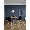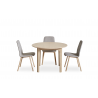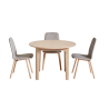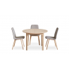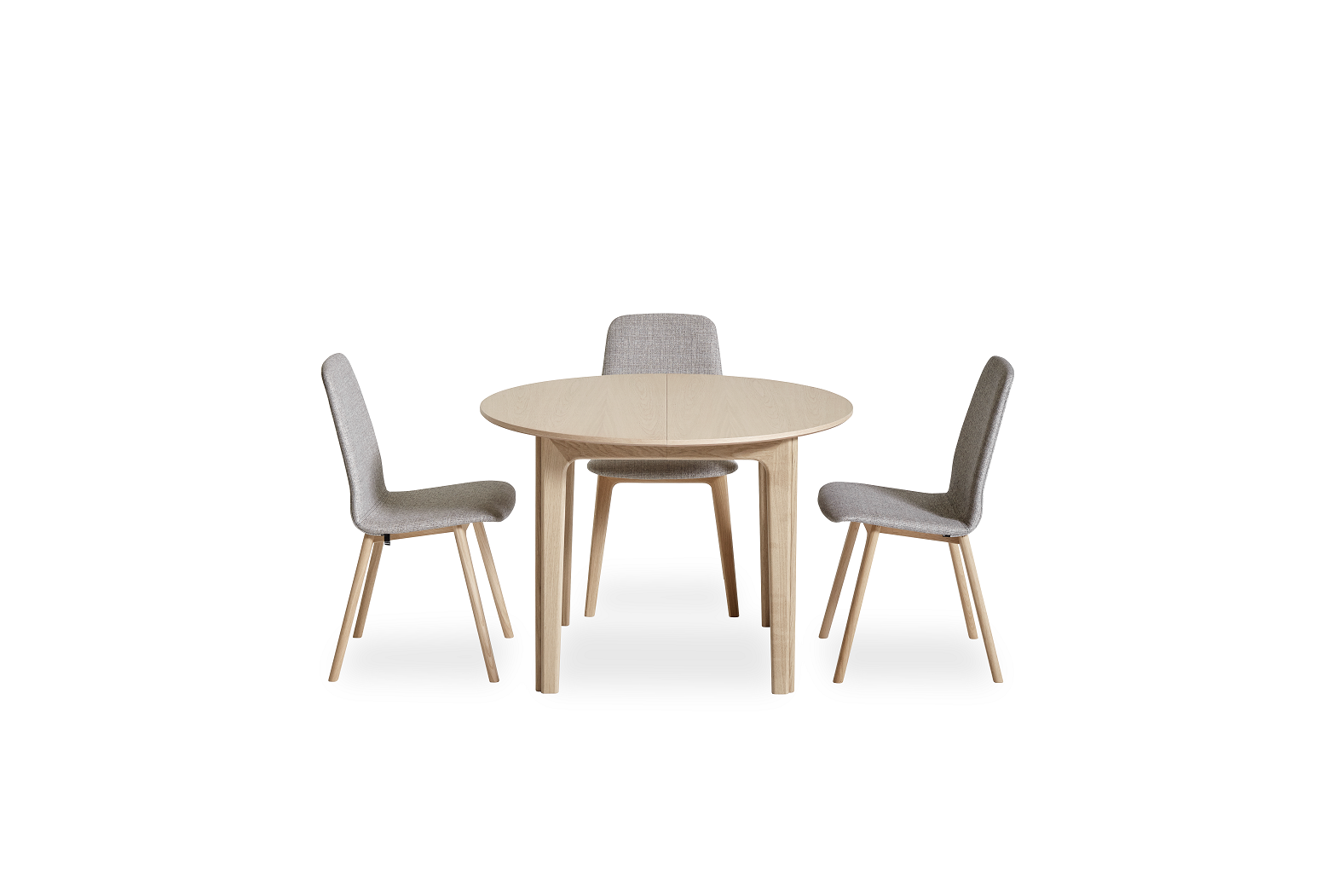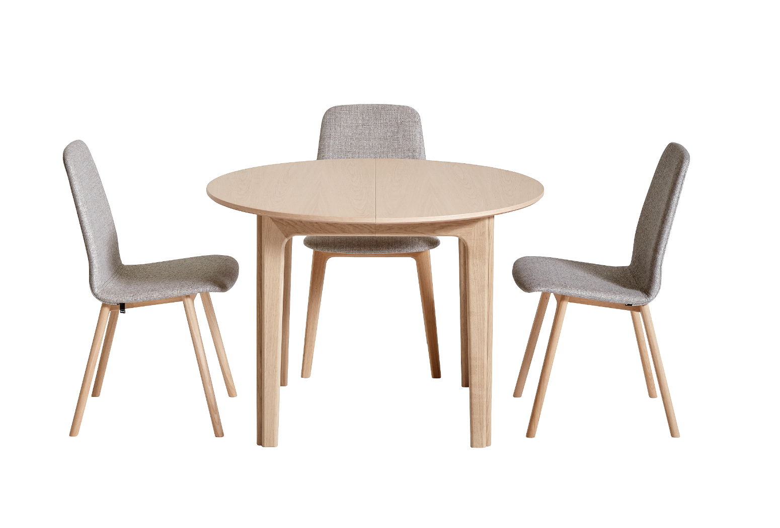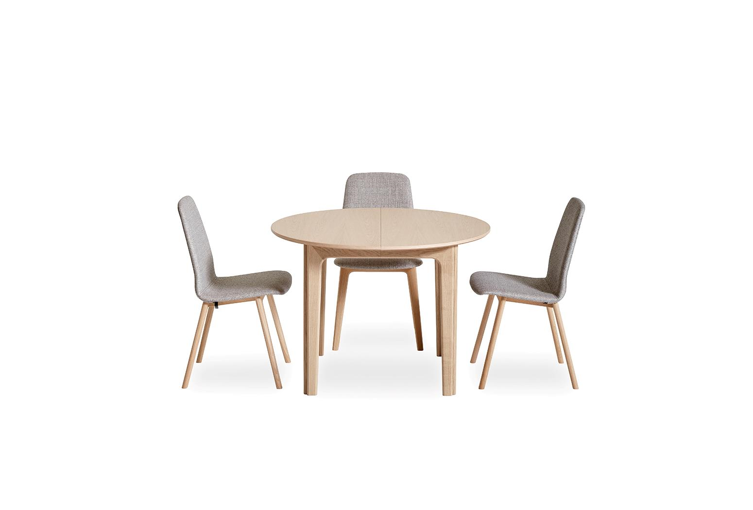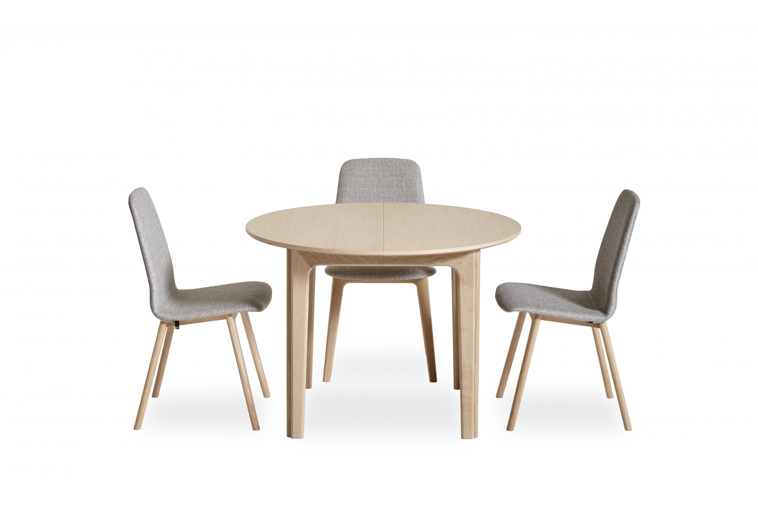 Tento malý kulatý stolek se rozkládá od průměru 105 cm do délky 145 cm pomocí skládacího listu skrytého uvnitř, který uvolní místo pro 6 osob kolem stolu. Design je velmi podobný jako u stolů SM26 a SM27, ale nohy SM111 zůstávají u sebe, což stolu dodává lehčí výraz.