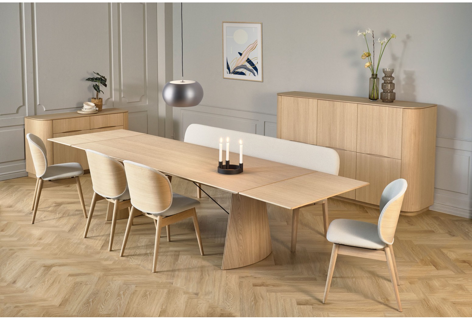 Stůl Collum s pěkně zakřivenými sloupovými podstavami je ikonický design, který nemá konkurenci. Pevná deska stolu s pevnými hranami má na každém konci inteligentní integrovaný úložný prostor pro výsuvné listy a lze ji objednat s jedním nebo dvěma přídavnými křídly odpovídajícími desce stolu. Stůl je k dispozici v širokém výběru dřevěných povrchů a odolných laminovaných povrchů v široké škále barev.