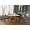 Nohy stolu Divido se krásně a poutavě stýkají s jeho deskou. Je kompletně vyrobeno z jasanového dřeva, má moderní vzhled a jemné známky inspirace klasického Lamino od Yngve Ekström.