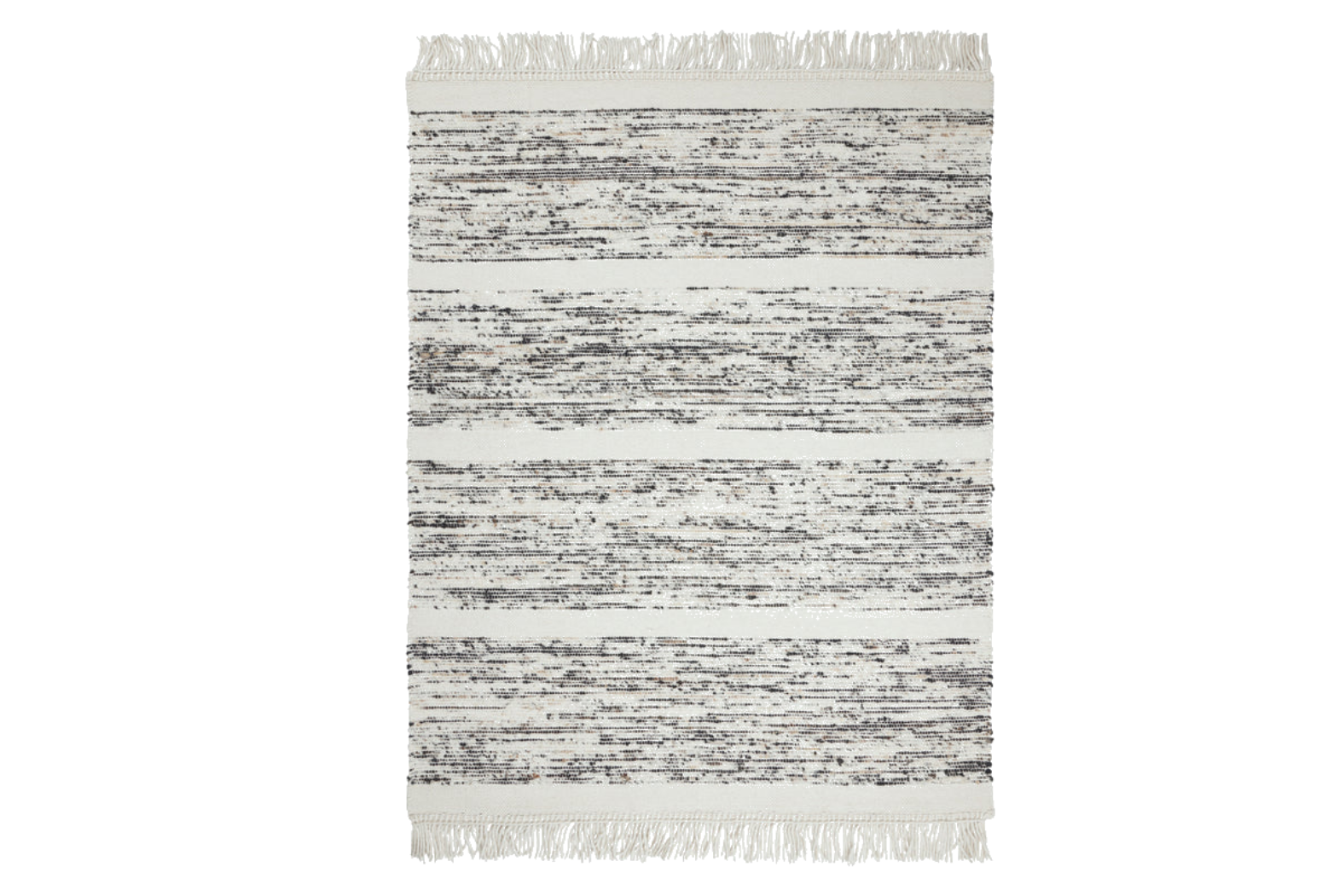 Monochromatické tóny v odstupňovaných liniích vytvářejí v tomto rustikálním koberci výrazný grafický vzor. Ručně vyrobený z teplé a odolné vlněné příze, skvrnitý design Gorm v kombinaci s definovanými panely má za následek syrový a současný výraz