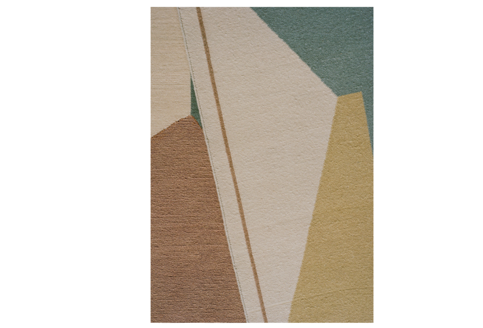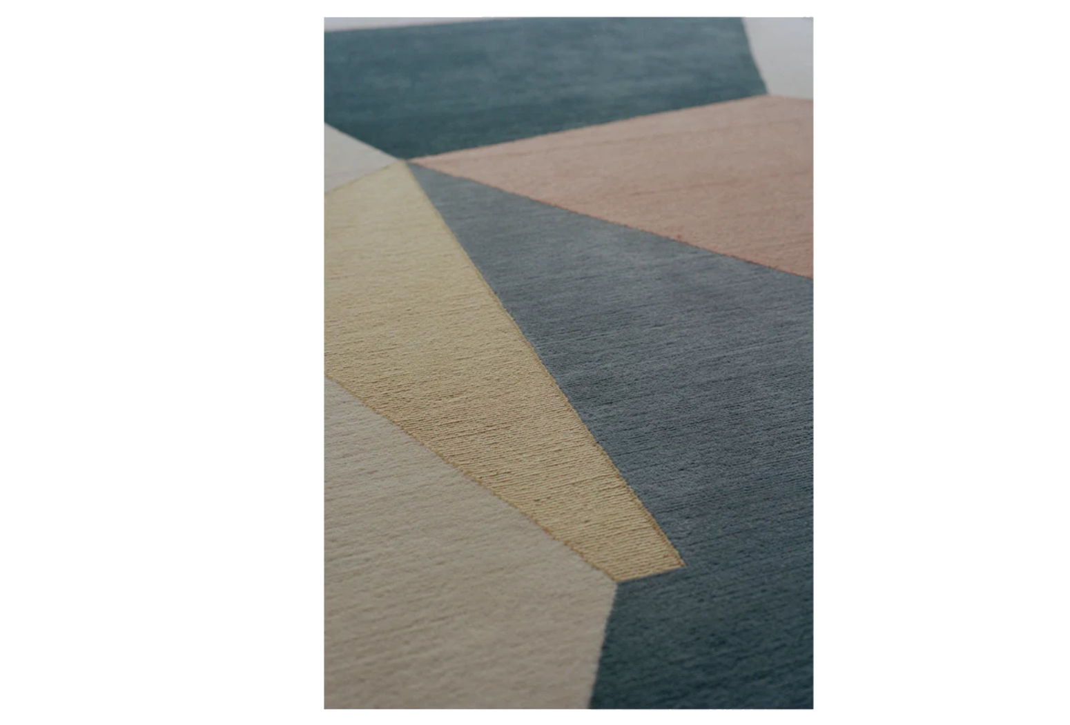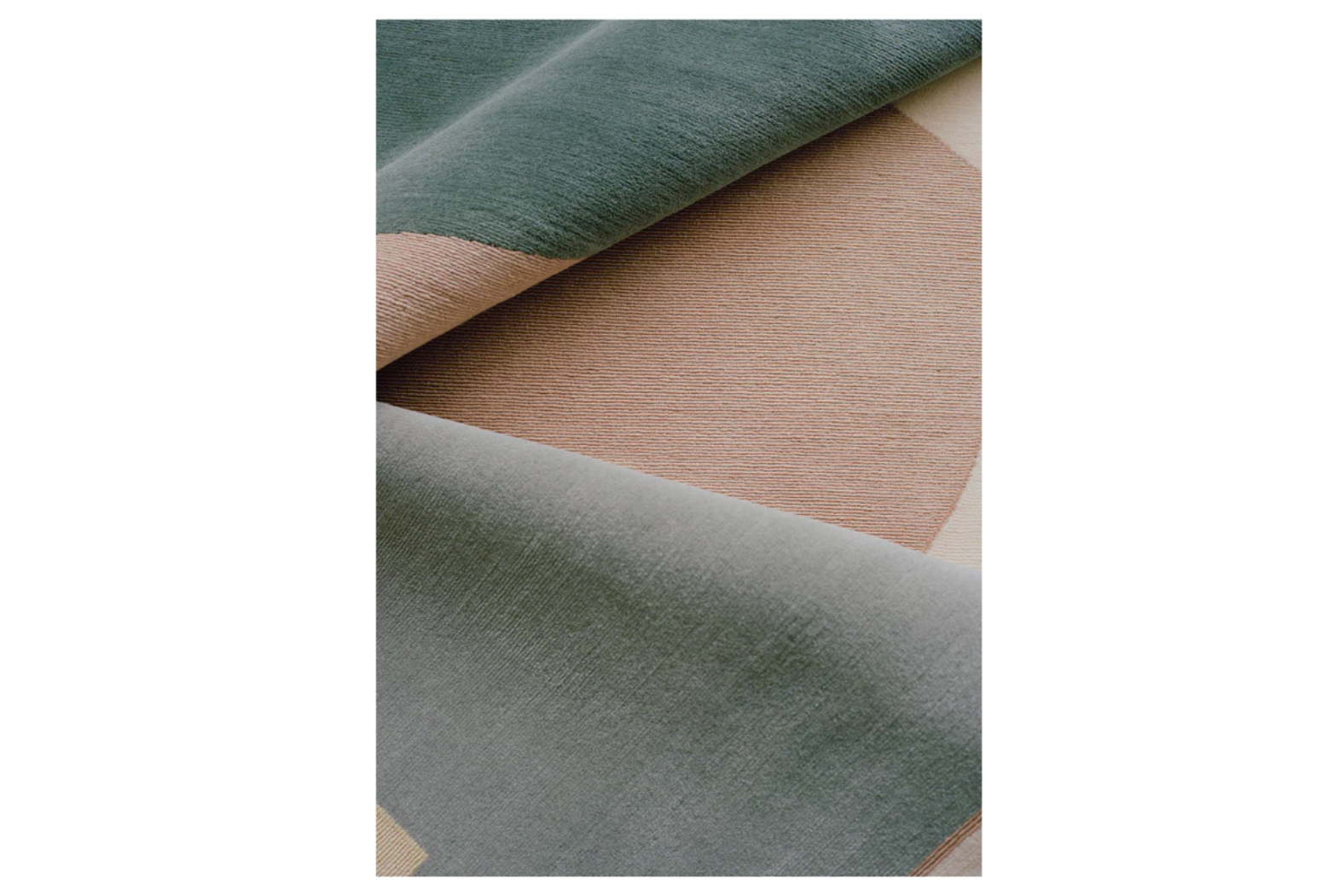 Barevná krajina odvážných detailů, Diffused Aura kombinuje grafické prvky a kontrastní tóny v současném vyjádření podlahového umění. Pečlivě vázaný za použití přírodních vláken je koberec vyroben z luxusní novozélandské vlny s organickou bavlněnou osnovou, která zvýrazňuje barvy, texturu a lesk a zároveň zajišťuje přirozené teplo, pevnost a odolnost.
