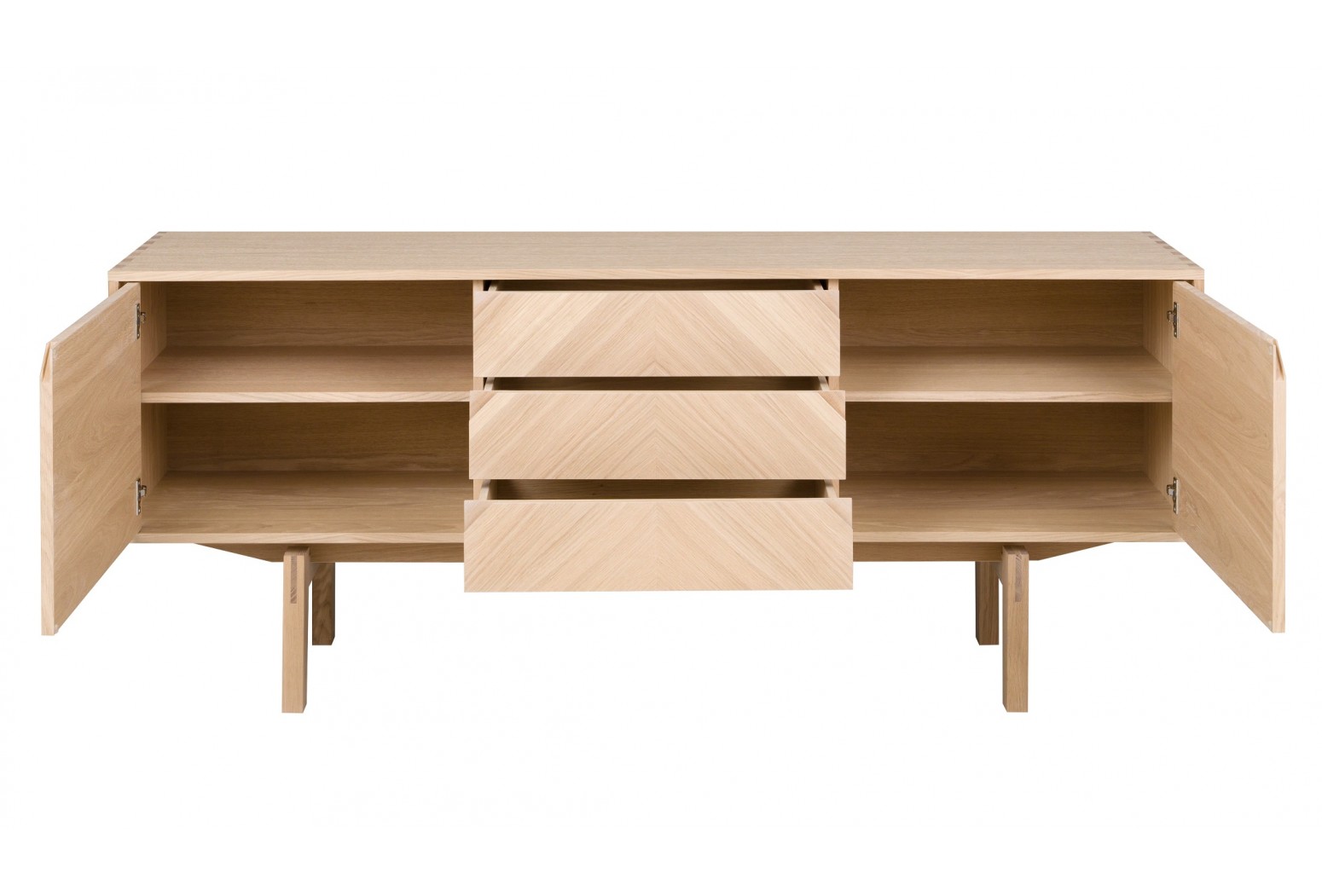 Příborník s řezy v dýze. Přední část je nápadná, diagonálním rozložením dýhy. Jsou verze se zásuvkami dvířkami. Dveře s měkkým zavíráním, zásuvky s plně výsuvným mechanismem, měkké zavírání. Uvnitř: vždy police. Podnoží z masivního dřeva s funkcí nastavitelnými nožičkami. Komody jsou  volně stojící. Pozn. Alternativně s rovnou dýhou.
