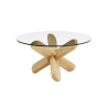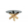 Ding je konferenční stolek s atraktivním designem. Dřevěná, skládací podnož. Dva odstíny dřeva a dva odstíny skla. Sklo je kalené, bezpečnostní.