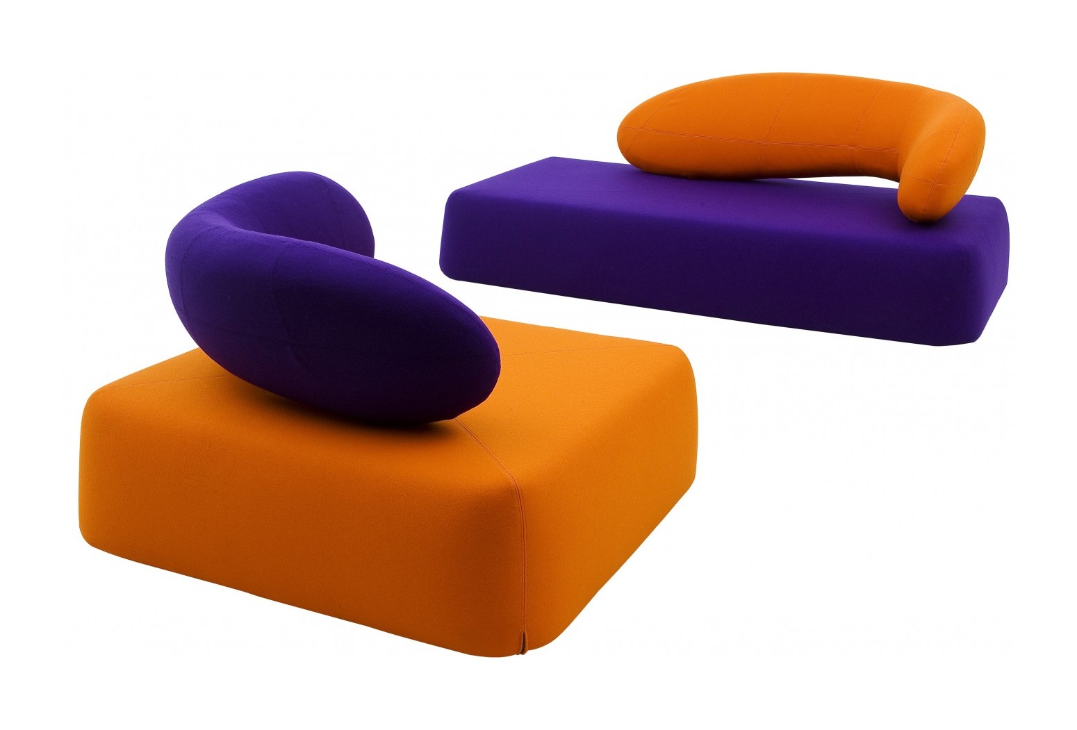 Křeslo a sofa s ladnými tvary vás láká k oddechu.