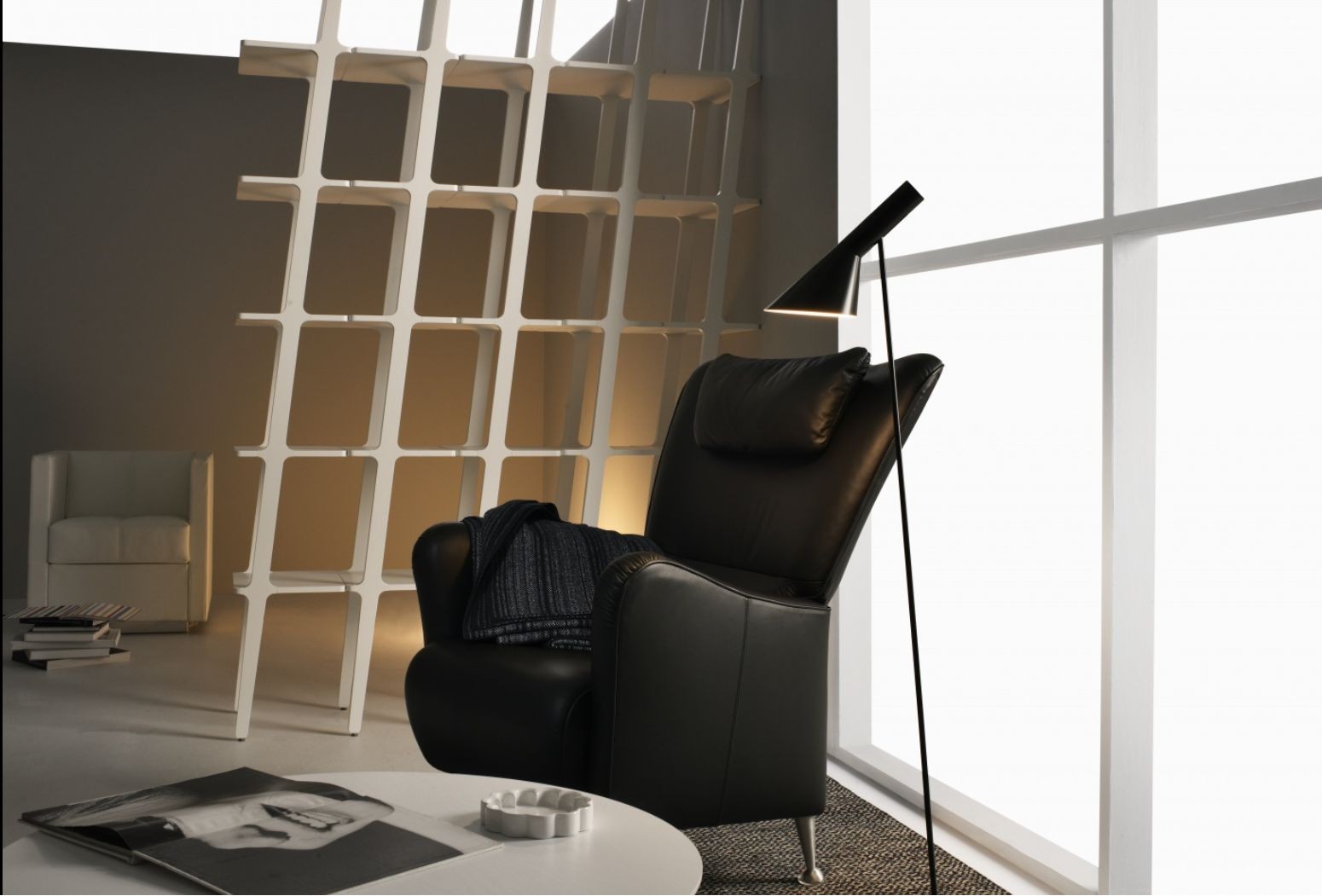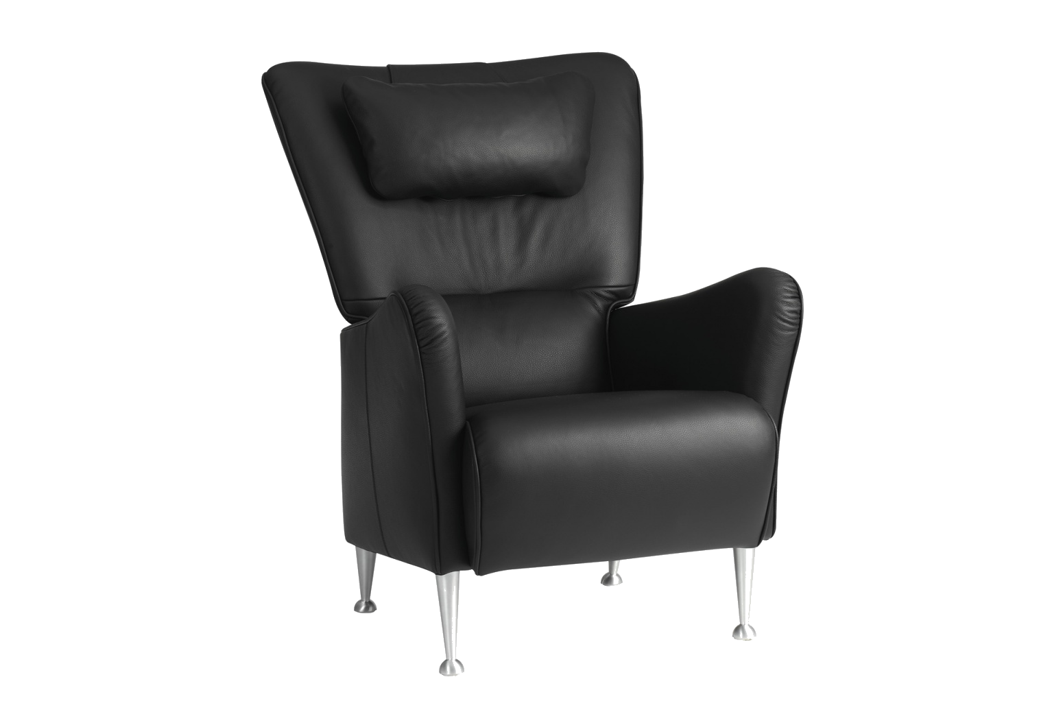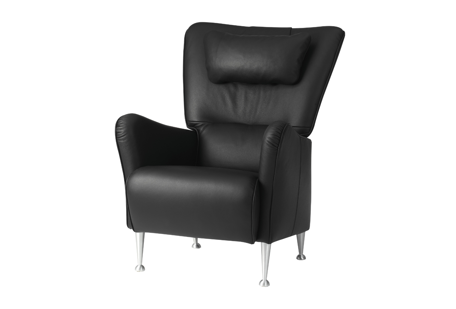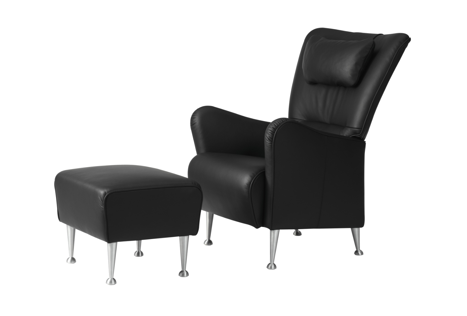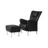 Moderní křeslo s opěradlem a stoličkou pro líné chvilky. Stepp má rám z ocelových trubek a nohy z buku, mořeného buku nebo kartáčovaného hliníku.