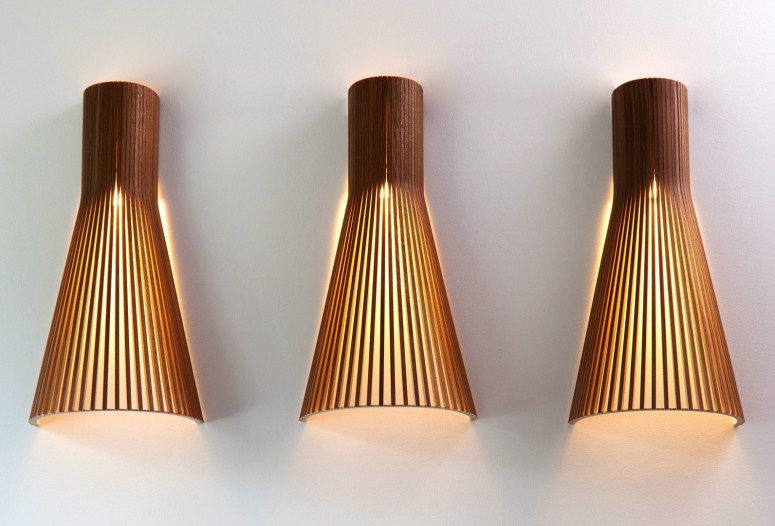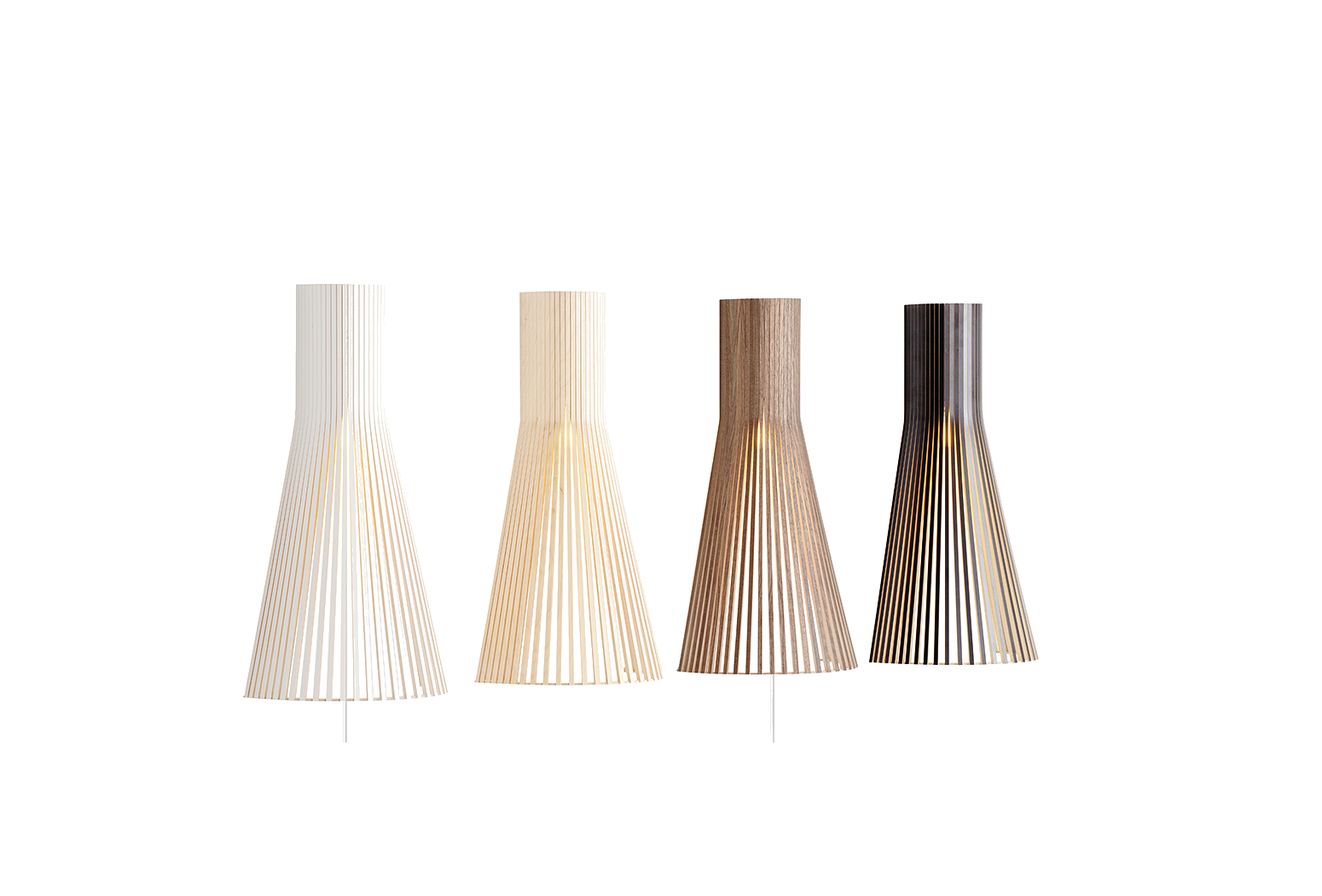 Kolekce designových lam Secto je navržena finským interiérovým architektem Seppo Koho. Toto nástěnné světlo může být umístěno směrem nahoru nebo dolů. Oživuje obyčejné chodby a vytváří inspirující náladu. Stínítka jsou vyrobeny z vrstvených březových lamel spojených balzovým kroužkem. Stínítka jsou dostupné v bříze přírodní, bílé nebo černé vrstvené bříze. Stínítka jsou ručně vyrobeny velice zručnými finskými řemeslníky.
