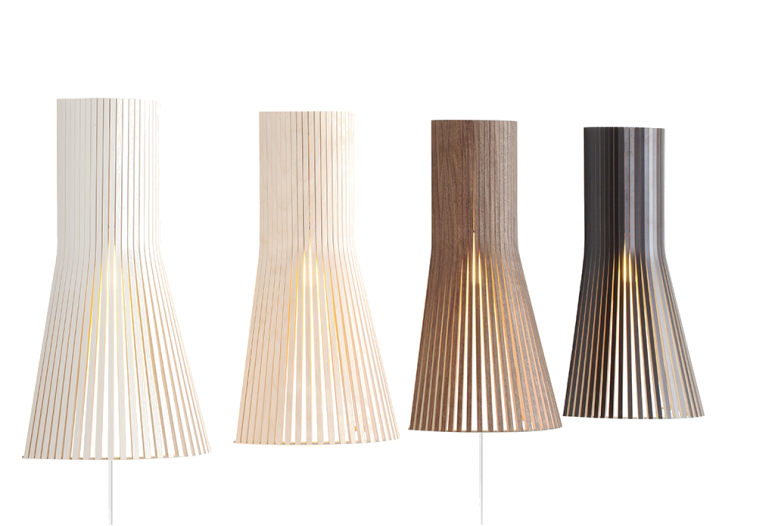 Kolekce designových lam Secto je navržena finským interiérovým architektem Seppo Koho. Toto nástěnné světlo může být umístěno směrem nahoru nebo dolů. Oživuje obyčejné chodby a vytváří inspirující náladu. Stínítka jsou vyrobeny z vrstvených březových lamel spojených balzovým kroužkem. Stínítka jsou dostupné v bříze přírodní, bílé nebo černé vrstvené bříze. Stínítka jsou ručně vyrobeny velice zručnými finskými řemeslníky.