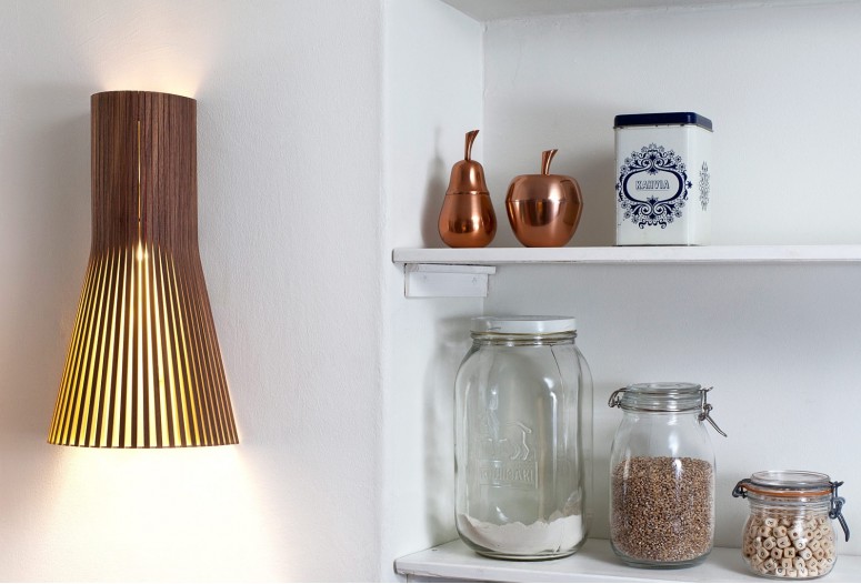 Kolekce designových lam Secto je navržena finským interiérovým architektem Seppo Koho. Toto nástěnné světlo může být umístěno směrem nahoru nebo dolů. Oživuje obyčejné chodby a vytváří inspirující náladu.