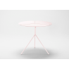 Tento kovový stůl je díky tenkému rámu a trojdílné desce inspirován tvarem jetele. Je k dispozici ve dvou výškách a lze jej použít samostatně, ale vypadá nejlépe, když dáte několik dohromady do klastru nebo překrývajících se párů. Design je lehký a jednoduchý, s jasnými paralelami k přírodě.