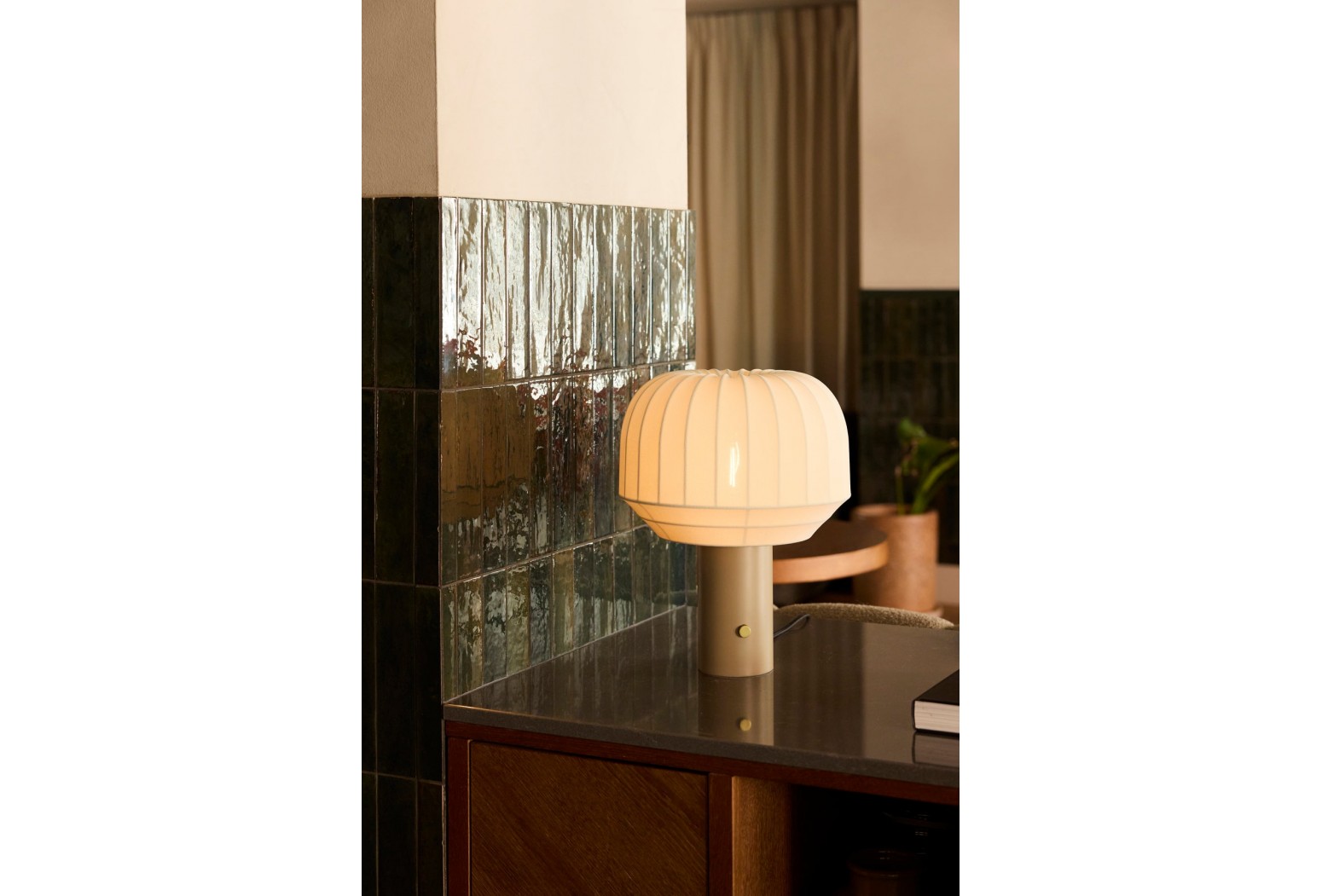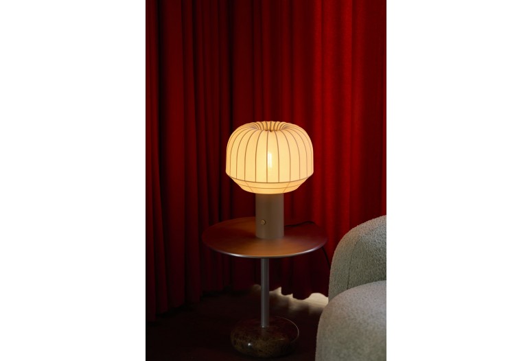 Tato stolní lampa je ideální pro umístění na stolek, nástěnnou polici nebo skříňku. Je potažena textilií, což je na trhu u stolních lamp vzácný nález, tato lampa je velmi dekorativní a má plynulý stmívač, což umožňuje snadno upravit jas podle nálady.