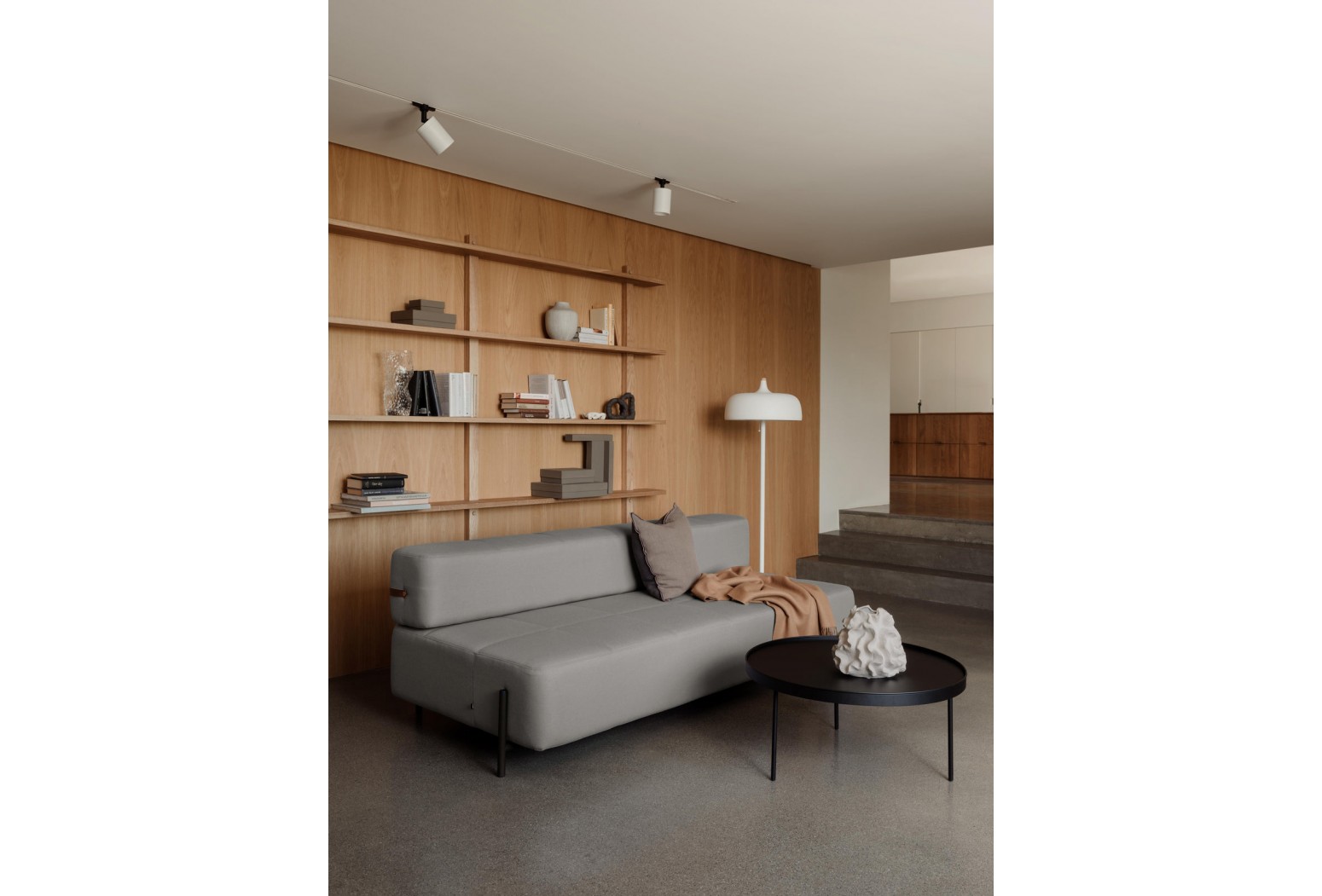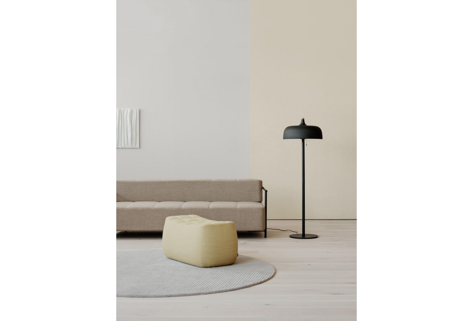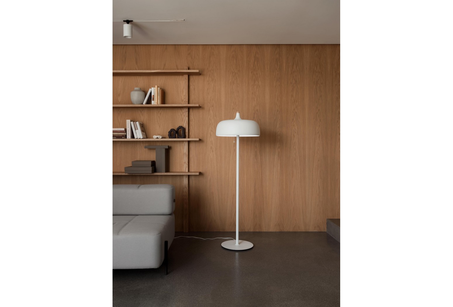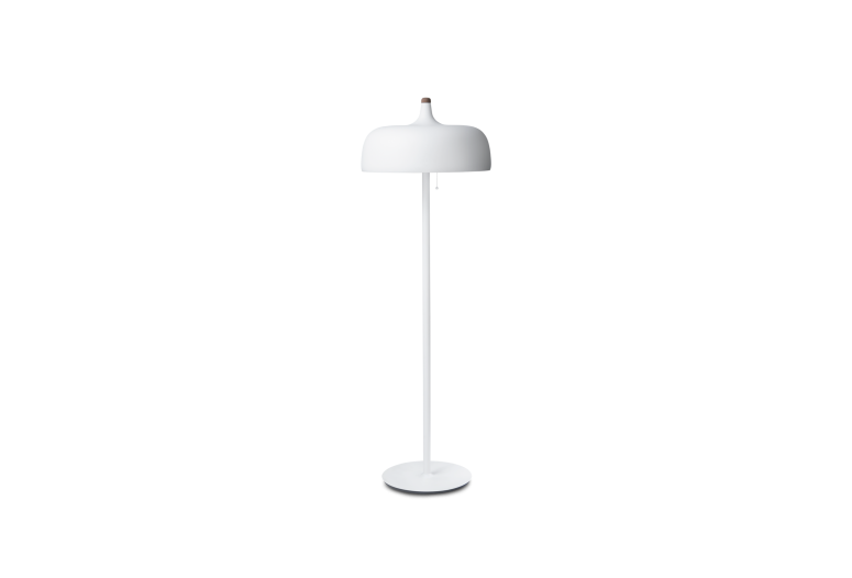 K dispozici v bílé, tmavě šedé a černé povrchové úpravě, stojací lampa Acorn má na hliníkovém stínidle teplé bukové a ořechové detaily spolu s pěkným vypínačem. Napájecí kabel je také ukrytý v čistém hedvábném šňůru.