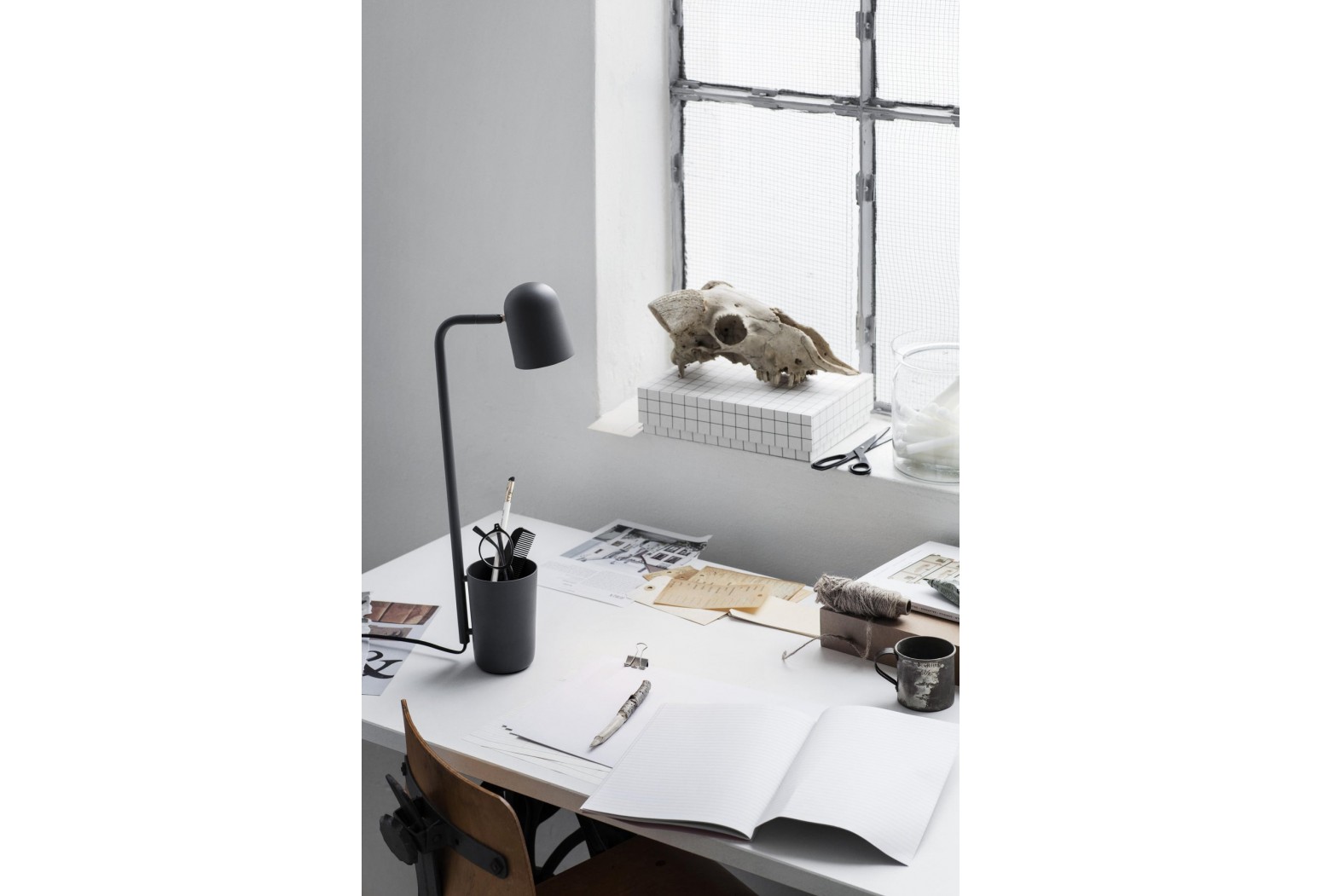 Designér Mads Sætter-Lassen rád představuje Buddyho jako 'malého pomocníka, kterého každý potřebuje'. Tato nenápadná stolní lampa je přesně tím – multifunkčním designem, který dává zaneprázdněným lidem základnu, ke které se mohou vracet. Vybavený držákem na pera, tužky, klíče nebo drobné drobné, Buddy vám pomůže, když potřebujete s přehledem o nezbytnostech.