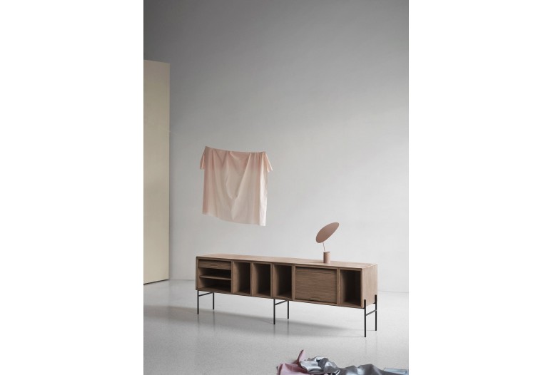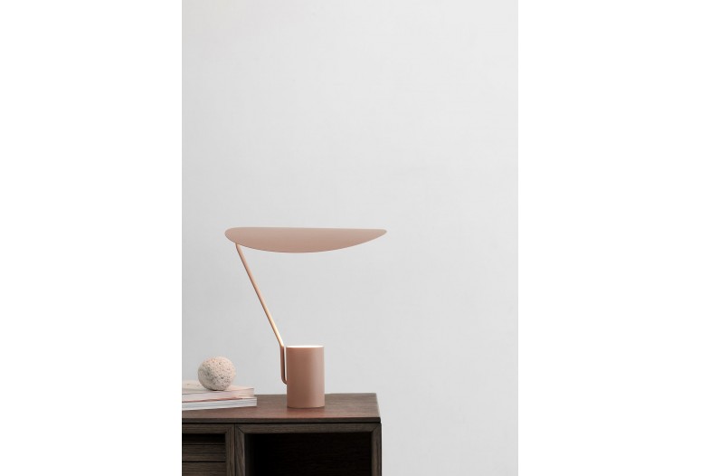 Ombre je inspirováno tvarem listu stromu, nastavitelný stín zachycuje světlo ve svých konturách a odráží ho na okolní povrchy. Základna a stínidlo jsou vyrobeny z oceli a plynule práškově lakované teplou béžovou barvou.