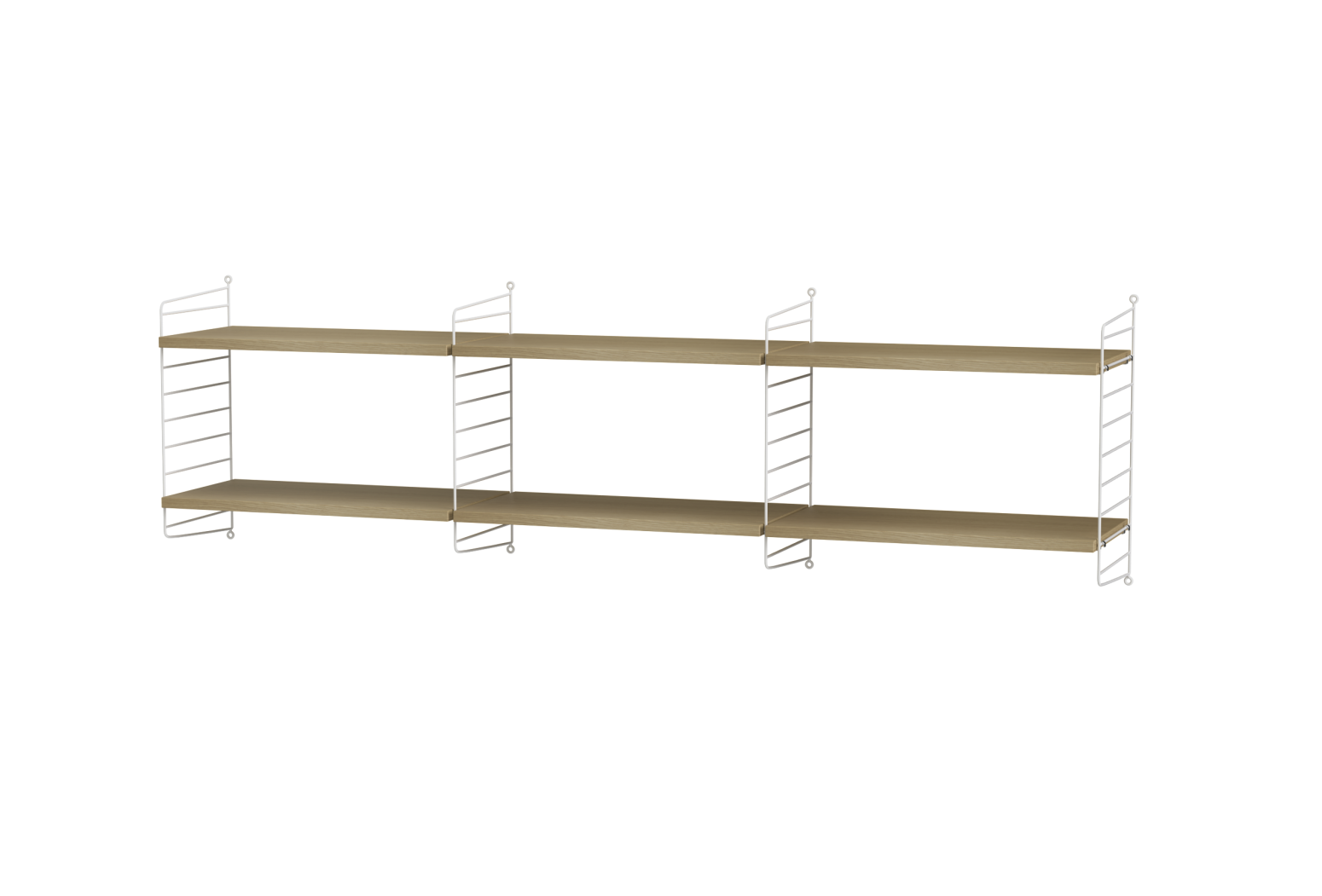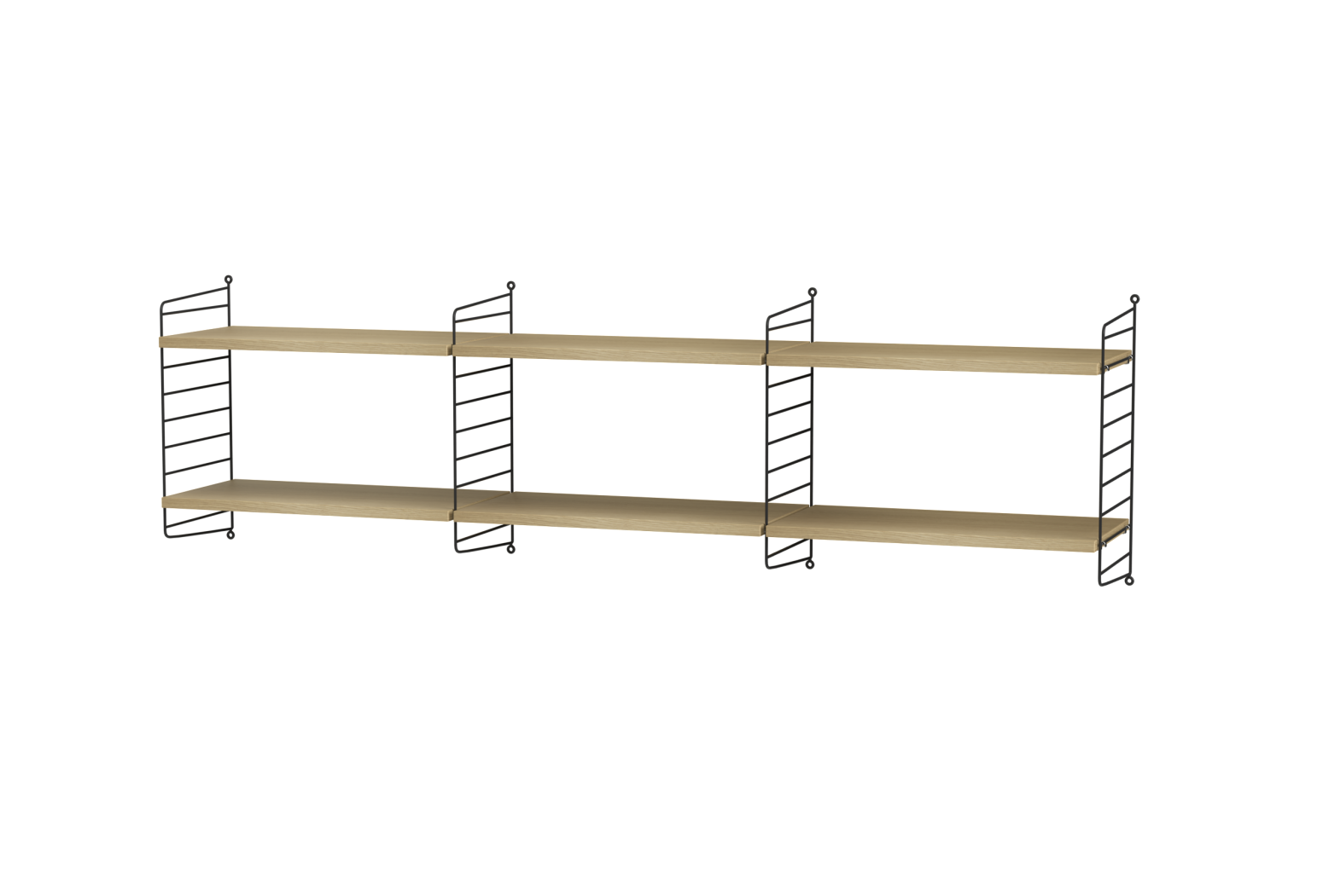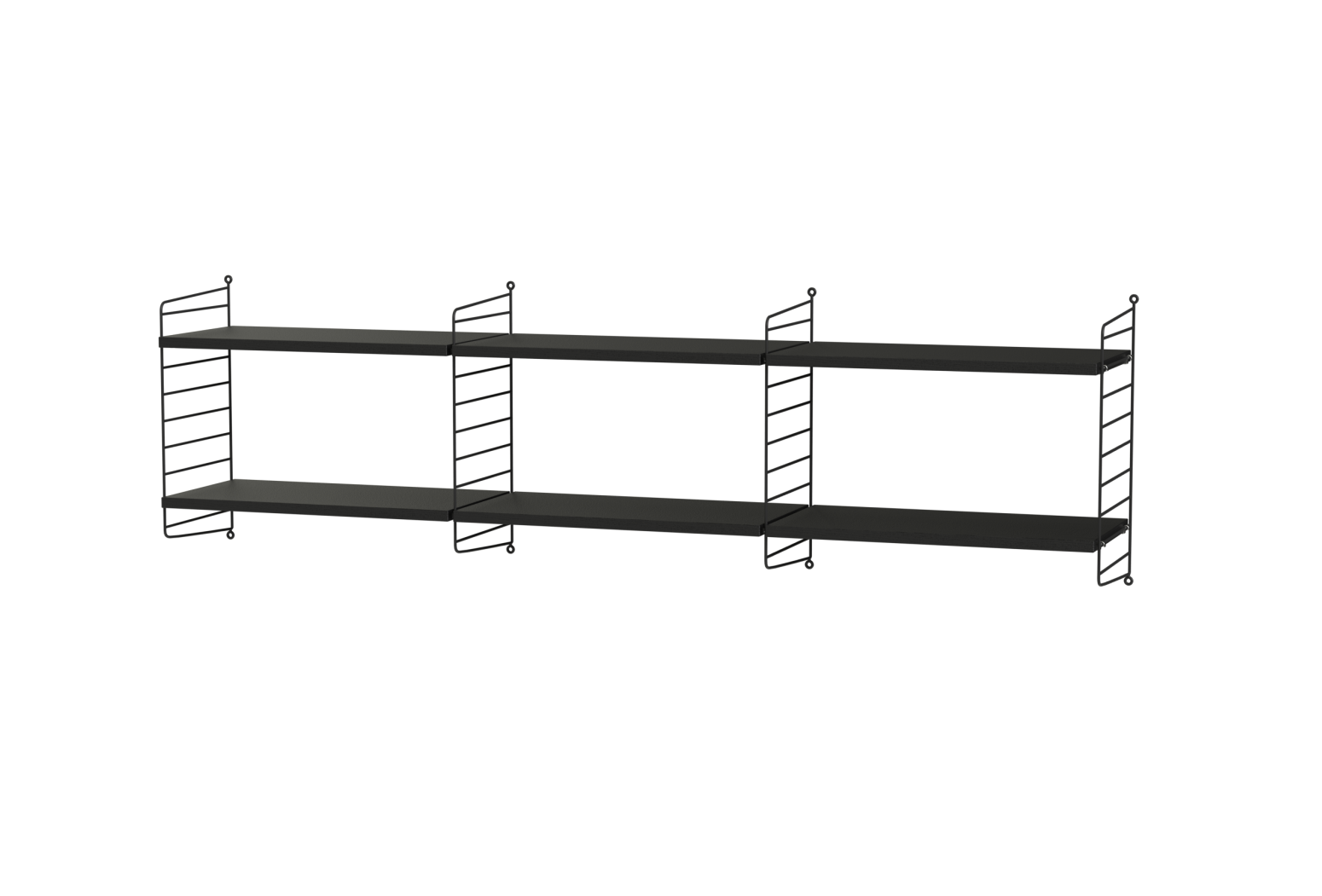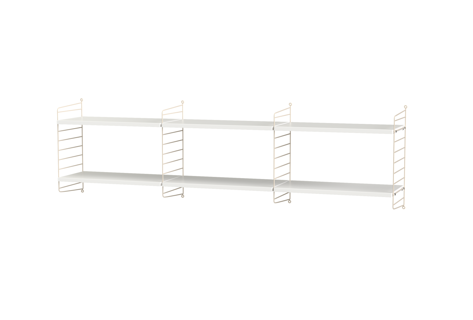 Variabilní policový systém určený k ukotvení na zeď, s odlehčenou strukturou, ale velmi stabilní. Snadno se sestaví a kdykoliv se jednoduše přestaví dle Vašich momentálních potřeb. Postranní panely udržují knihy či jakýkoliv jiný obsah bezpečně na místě a v rámci jedné sestavy může být kombinováno více různých hloubek. Když potřebujete více místa, snadno dokoupíte další díly a navážete na stávající sestavu. Hodí se jak na malé, tak velké zdi. To všechno jsou důvody, proč systémy String i po 60 letech stále přitahují pozornost.