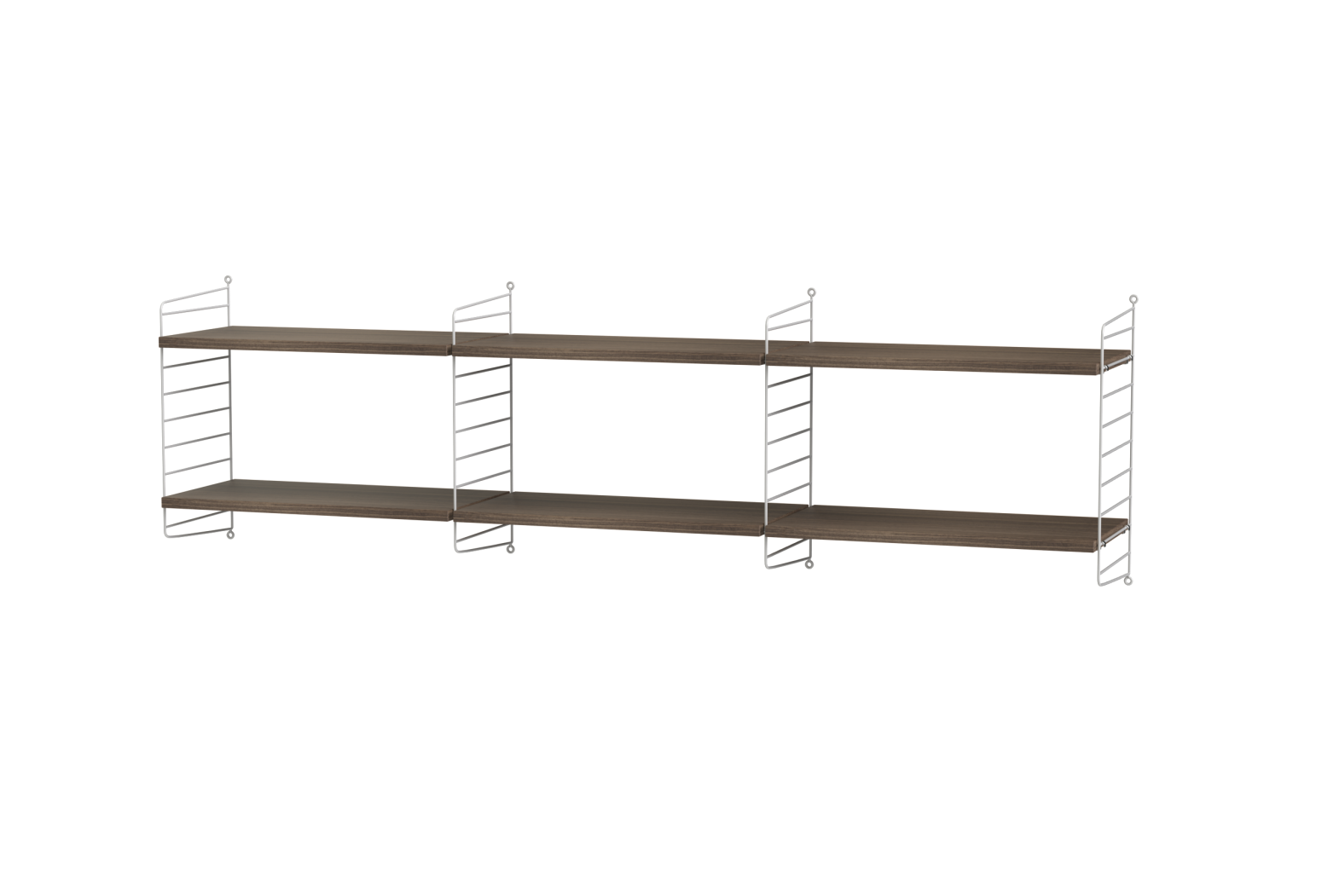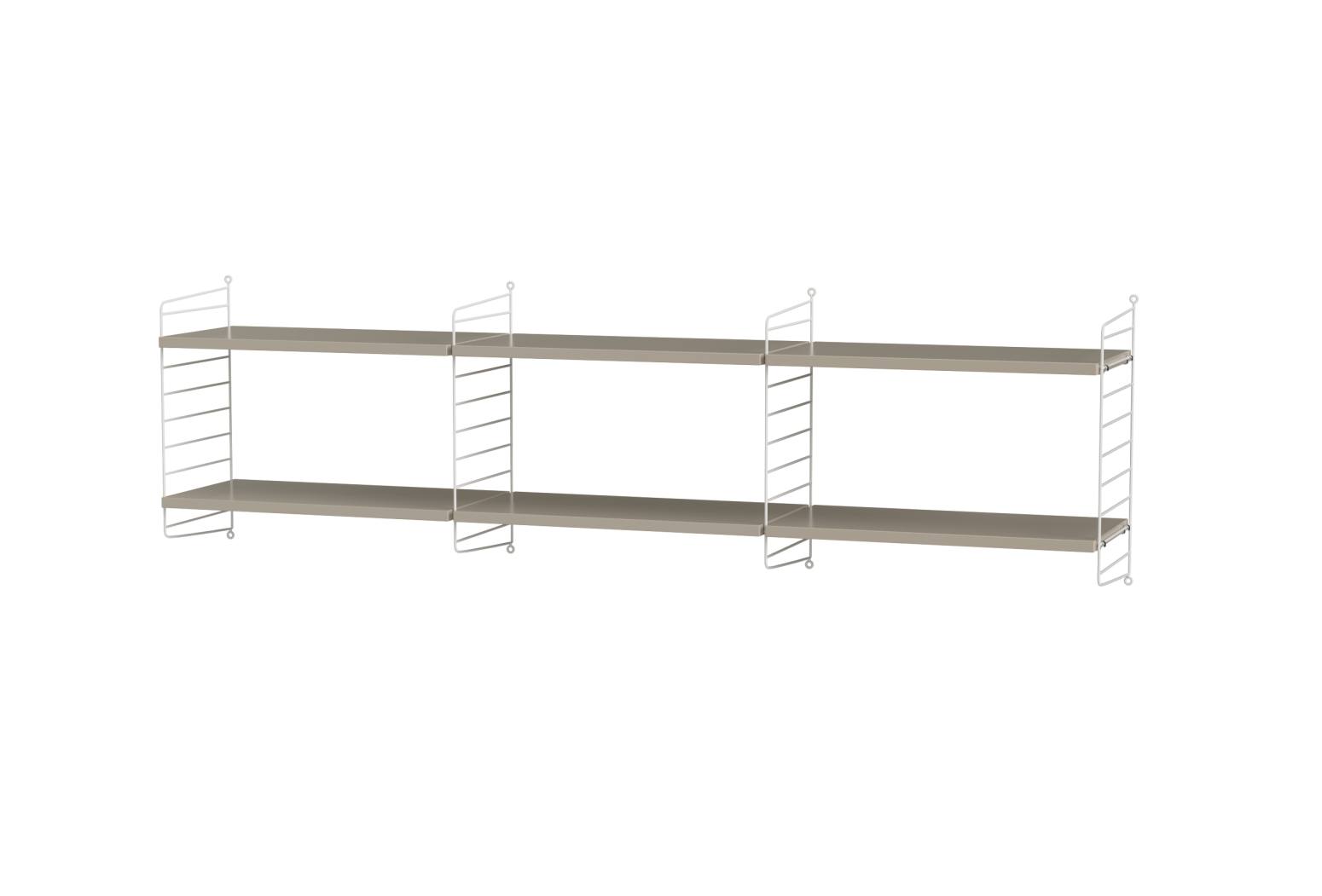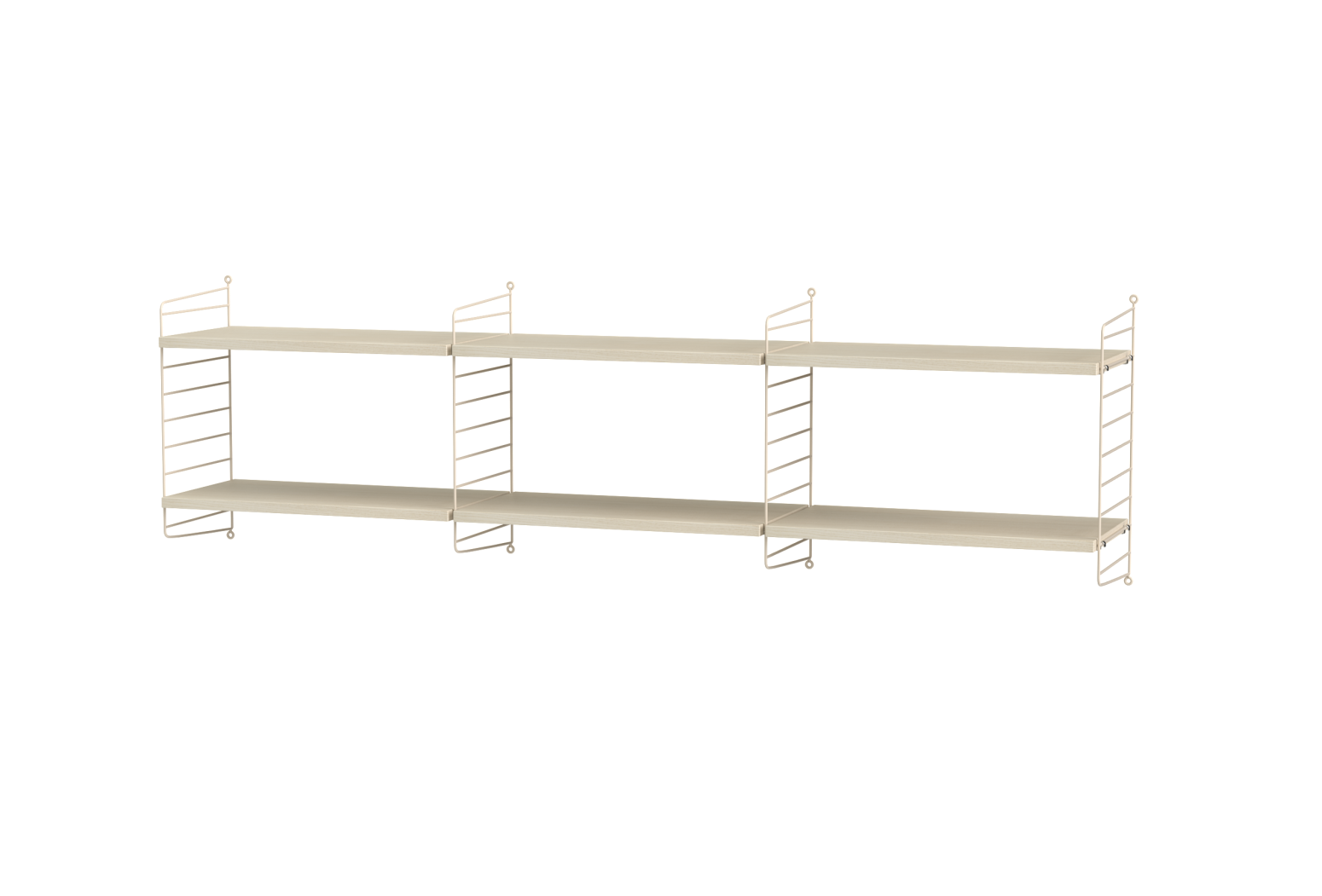 Variabilní policový systém určený k ukotvení na zeď, s odlehčenou strukturou, ale velmi stabilní. Snadno se sestaví a kdykoliv se jednoduše přestaví dle Vašich momentálních potřeb. Postranní panely udržují knihy či jakýkoliv jiný obsah bezpečně na místě a v rámci jedné sestavy může být kombinováno více různých hloubek. Když potřebujete více místa, snadno dokoupíte další díly a navážete na stávající sestavu. Hodí se jak na malé, tak velké zdi. To všechno jsou důvody, proč systémy String i po 60 letech stále přitahují pozornost.