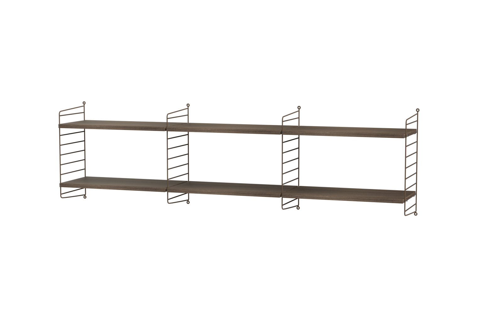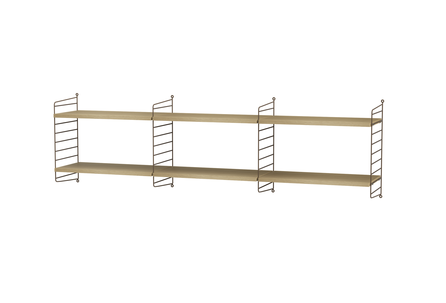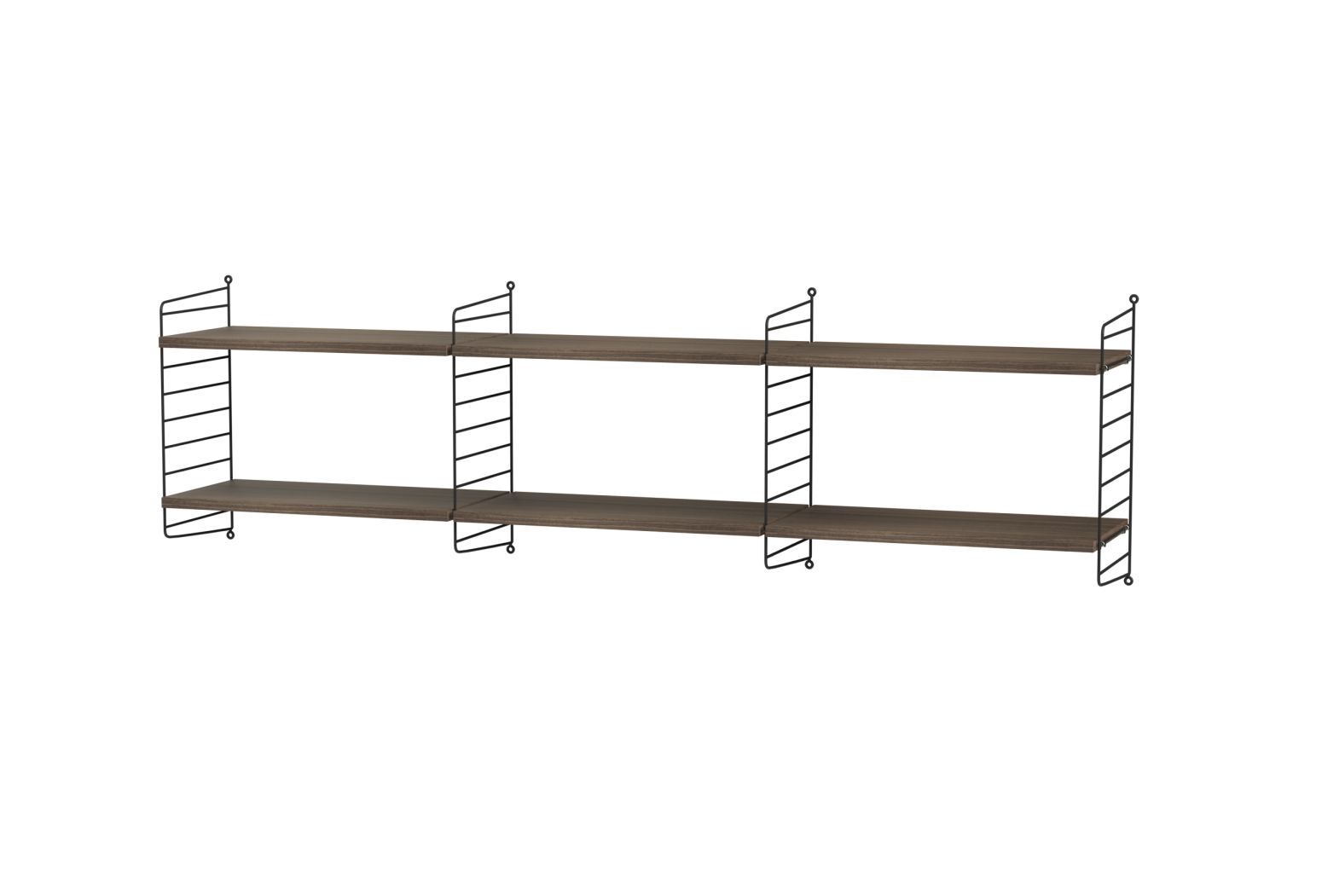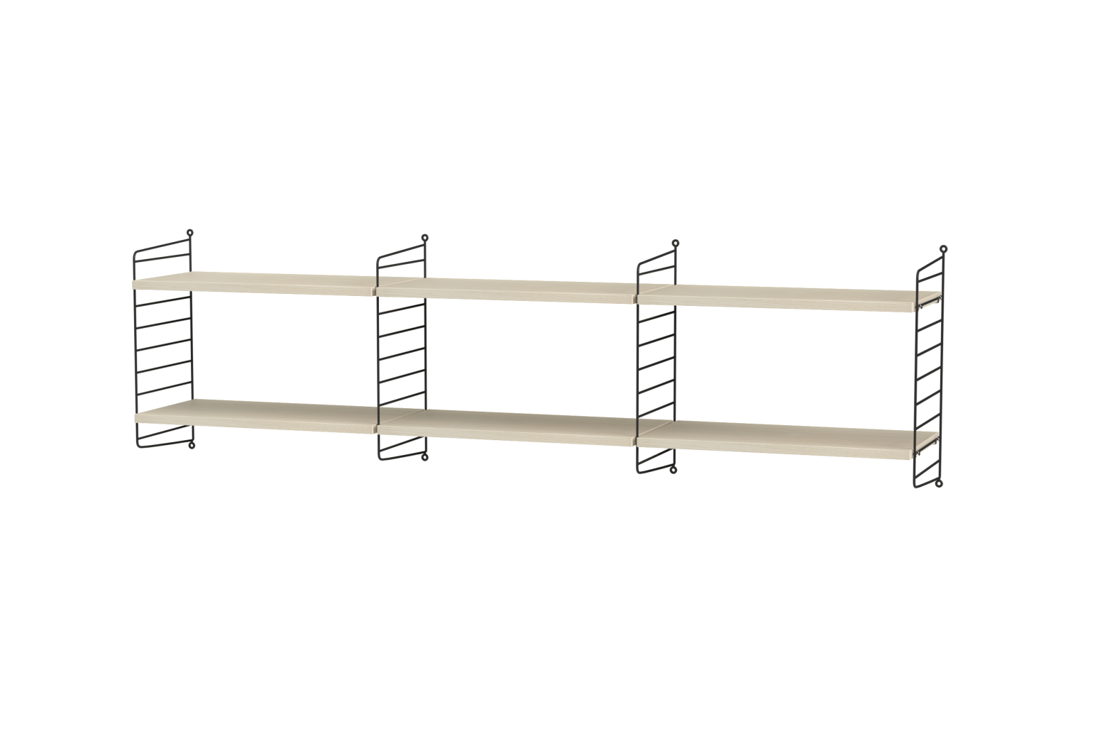 Variabilní policový systém určený k ukotvení na zeď, s odlehčenou strukturou, ale velmi stabilní. Snadno se sestaví a kdykoliv se jednoduše přestaví dle Vašich momentálních potřeb. Postranní panely udržují knihy či jakýkoliv jiný obsah bezpečně na místě a v rámci jedné sestavy může být kombinováno více různých hloubek. Když potřebujete více místa, snadno dokoupíte další díly a navážete na stávající sestavu. Hodí se jak na malé, tak velké zdi. To všechno jsou důvody, proč systémy String i po 60 letech stále přitahují pozornost.