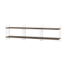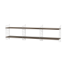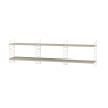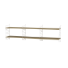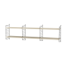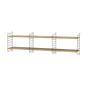 Připravená sestava ze systému String. Kompletní soubor prvků dle zobrazení a soupisu. Z nabídky je možno vybrat materiálové provedení dřevěných částí a odstín lakování kovových stojek.