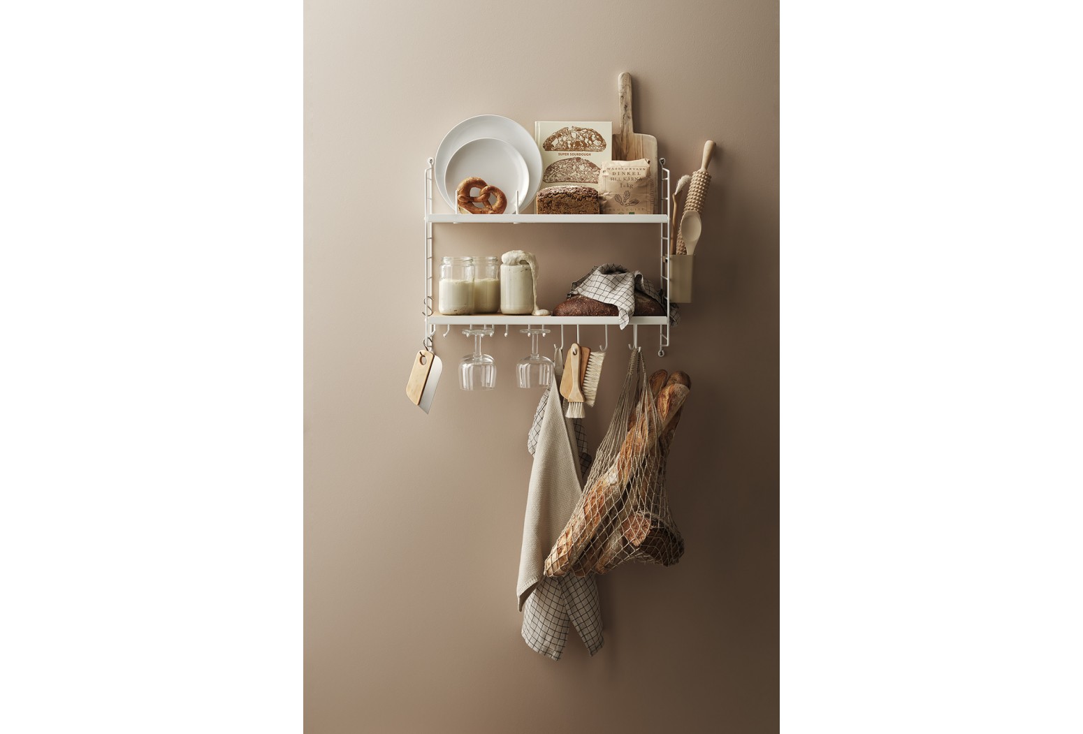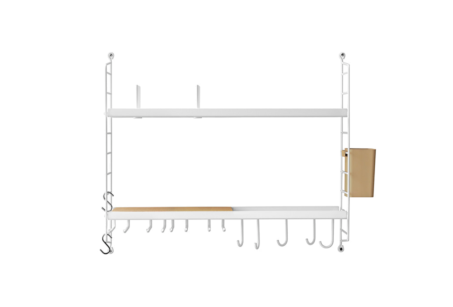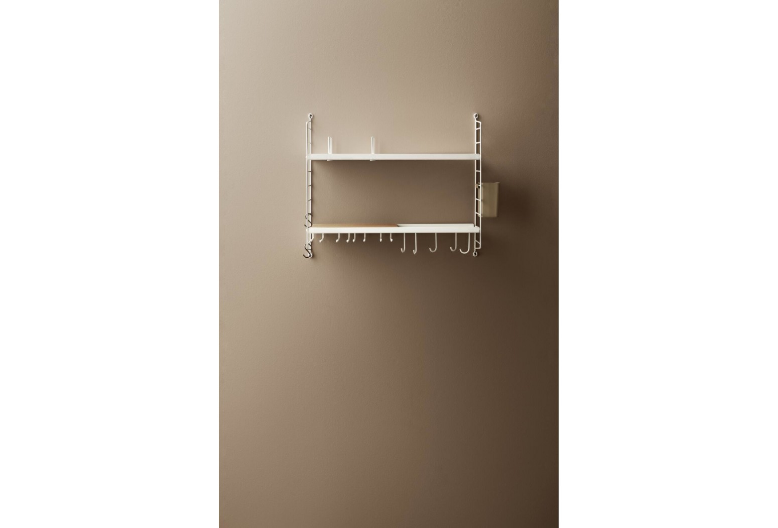 Variabilní policový systém určený k ukotvení na zeď, s odlehčenou strukturou, ale velmi stabilní. Snadno se sestaví a kdykoliv se jednoduše přestaví dle Vašich momentálních potřeb. Postranní panely udržují knihy či jakýkoliv jiný obsah bezpečně na místě a v rámci jedné sestavy může být kombinováno více různých hloubek. Když potřebujete více místa, snadno dokoupíte další díly a navážete na stávající sestavu. Hodí se jak na malé, tak velké zdi. To všechno jsou důvody, proč systémy String i po 60 letech stále přitahují pozornost.