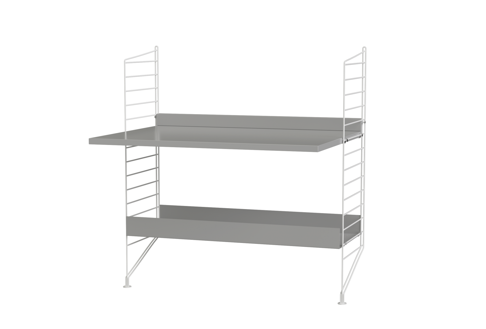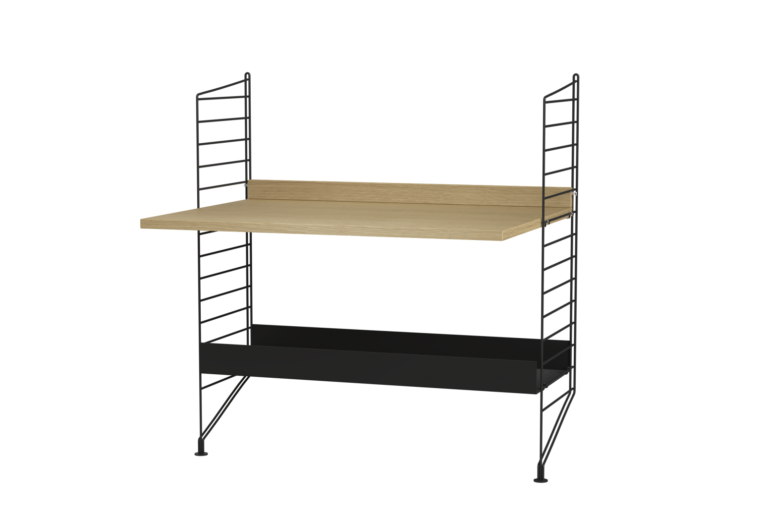 Variabilní policový systém určený k ukotvení na zeď, s odlehčenou strukturou, ale velmi stabilní. Snadno se sestaví a kdykoliv se jednoduše přestaví dle Vašich momentálních potřeb. Postranní panely udržují knihy či jakýkoliv jiný obsah bezpečně na místě a v rámci jedné sestavy může být kombinováno více různých hloubek. Když potřebujete více místa, snadno dokoupíte další díly a navážete na stávající sestavu. Hodí se jak na malé, tak velké zdi. To všechno jsou důvody, proč systémy String i po 60 letech stále přitahují pozornost.