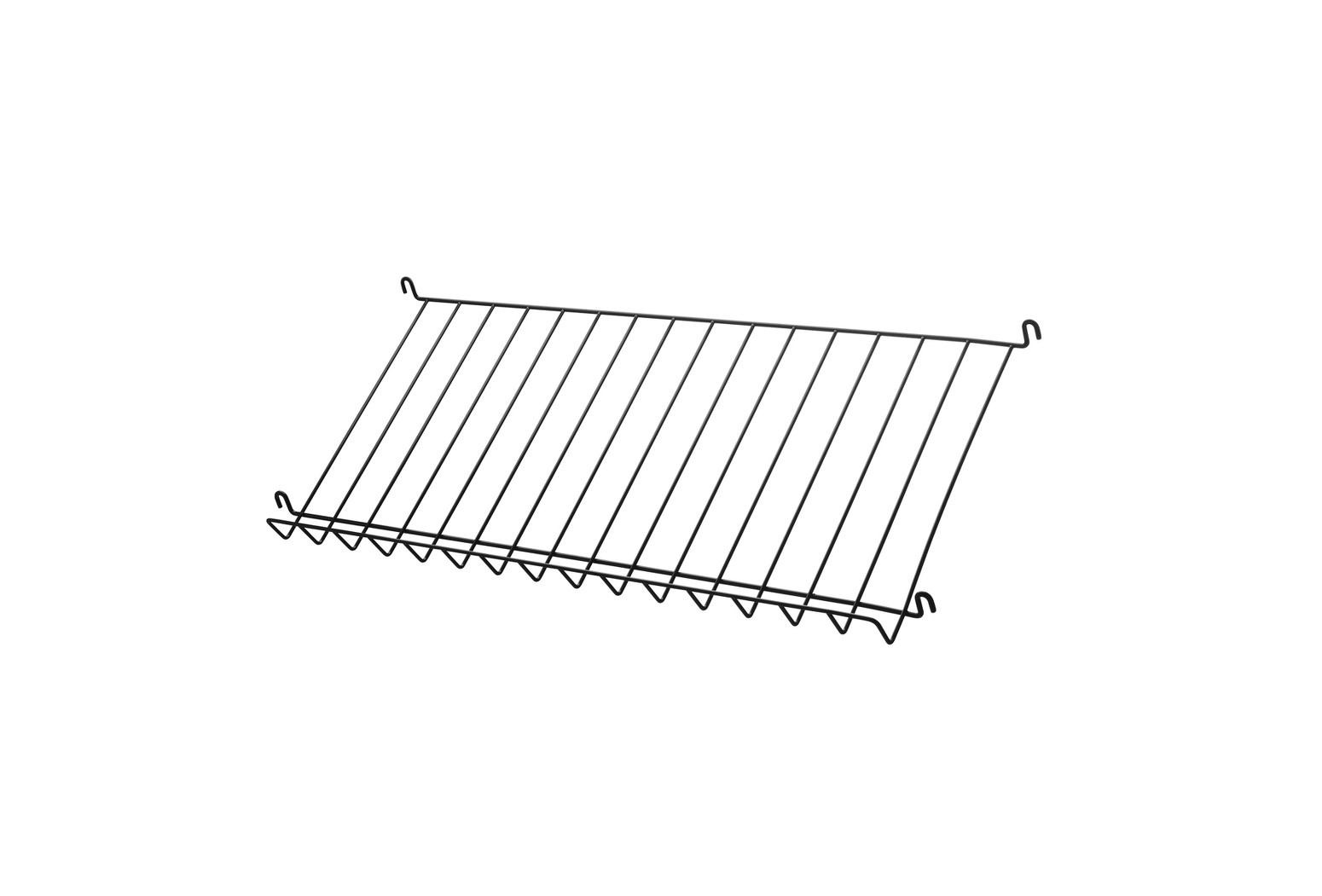 Kovová perforovaná police. Zahrnutý okraj zabraňuje pádu věcí z police. Lehce přestavitelná, elegantní.