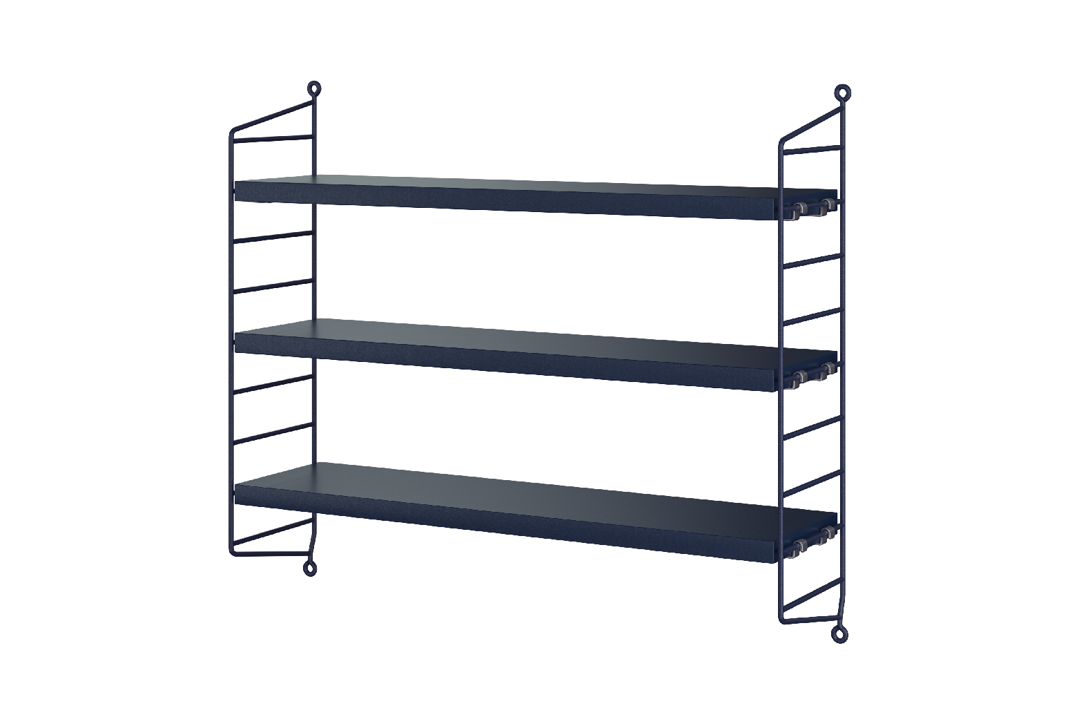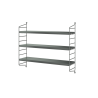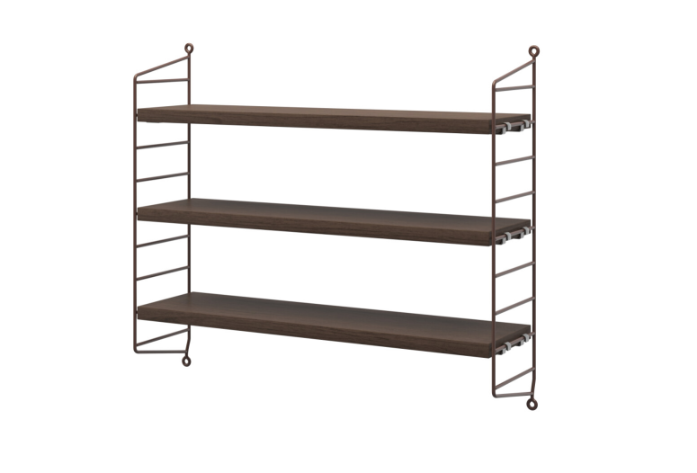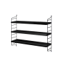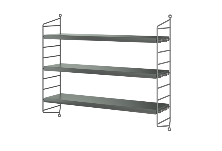 Variabilní policový systém určený k ukotvení na zeď, s odlehčenou strukturou, ale velmi stabilní. Snadno se sestaví a kdykoliv se jednoduše přestaví dle Vašich momentálních potřeb. Postranní panely udržují knihy či jakýkoliv jiný obsah bezpečně na místě a v rámci jedné sestavy může být kombinováno více různých hloubek. Když potřebujete více místa, snadno dokoupíte další díly a navážete na stávající sestavu. Hodí se jak na malé, tak velké zdi. To všechno jsou důvody, proč systémy String i po 60 letech stále přitahují pozornost.