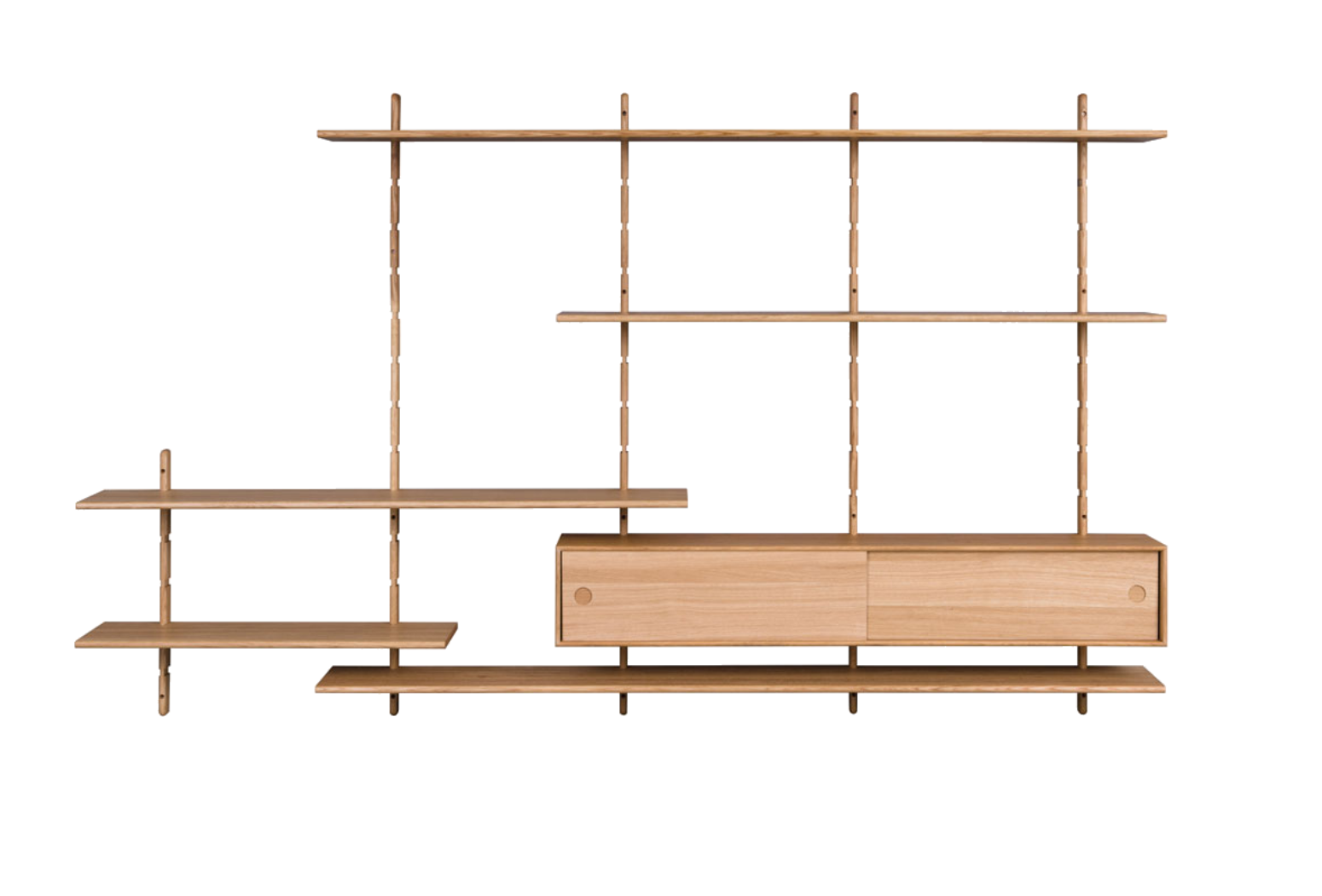 More je variabilní policový systém, navržený tak, aby vyhověl všem vašim nárokům na dispozice. Jednoduché nosné prvky, snadné osazení polic a skříněk a několik materiálových variant. Vyberte si z předem navržených sestav, tu která vám nejvíce vyhovuje, nebo buďte kreativní a sestavte si vlastní stěnu. Každý díl lze objednat samostatně. Oproti systému Less je More více zakulacený, má oblejší hrany a detaily jsou spíše s rádiusy. Úchytky na dvířkách jsou kruhové, všechny hrany oblé.