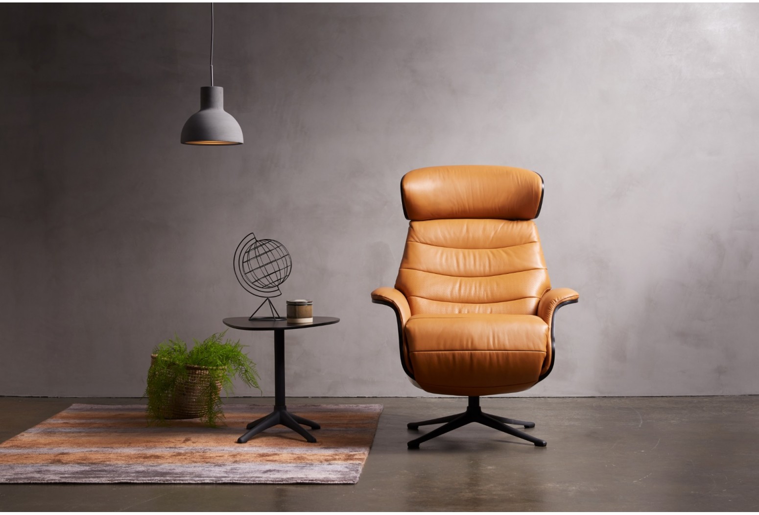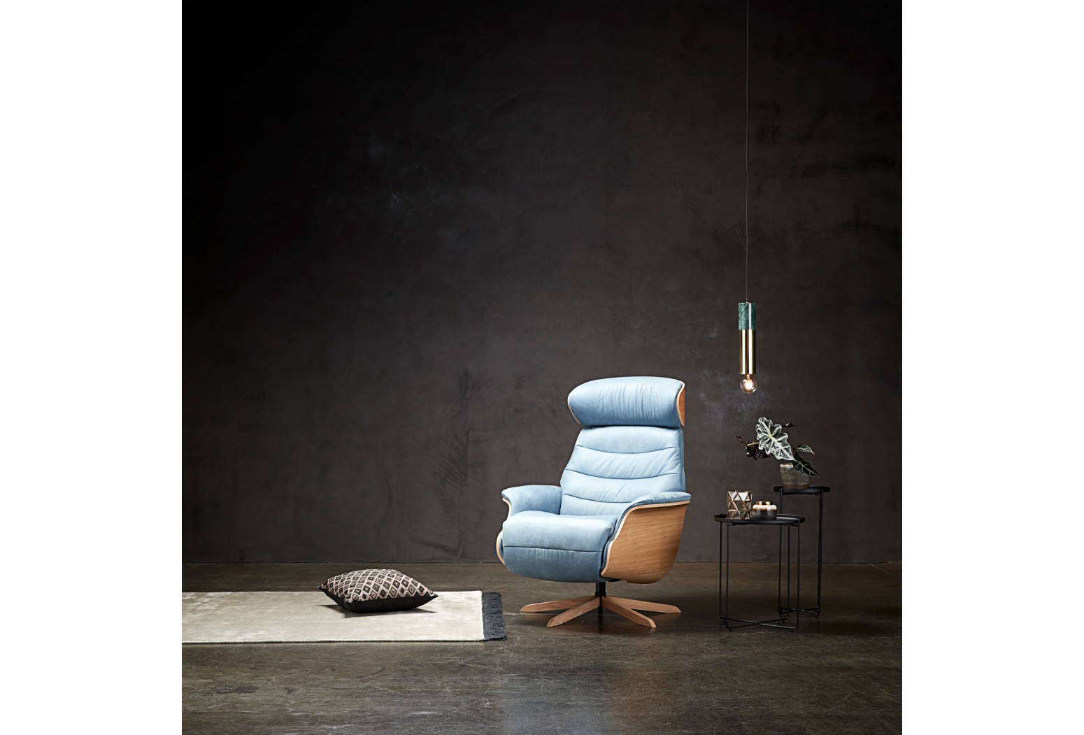 Podhlavník s nastavitelnou výškou a úhlem, pro nejlepší polohu pro čtení, sledování televize. Skořepina křesla je v 5 různých překližkových površích a barvách nebo plně čalouněná. Elegantní hliníkové nohy jsou k dispozici v černém nebo leštěném hliníku.