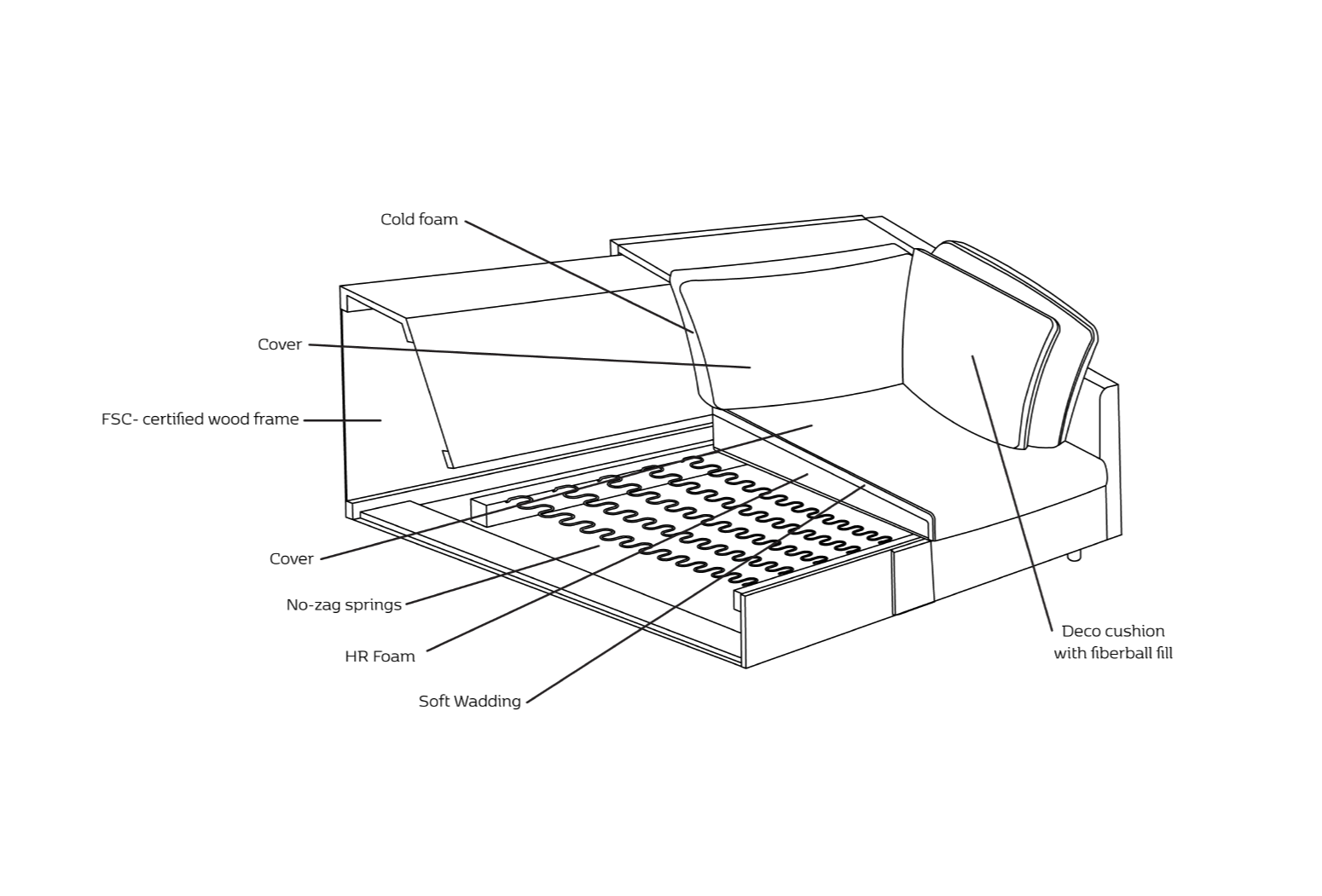 Vyrábí v prvotřídní kvalitě a pro výrobu využívá poctivé materiály. Rámy pohovek jsou z masivního dřeva, multiplexu, nenosné části z dtd ve standardu FSC. Výplně sedáku jsou ze studené pěny, která se odlišuje prodyšností a . Pro mimořádný komfort vrchní vrstva u většiny pohovek je z peří z mořských ptáků. Na čalounění používá odolnou kolekci látek s certifikací Oeke-Tex i kůží.
