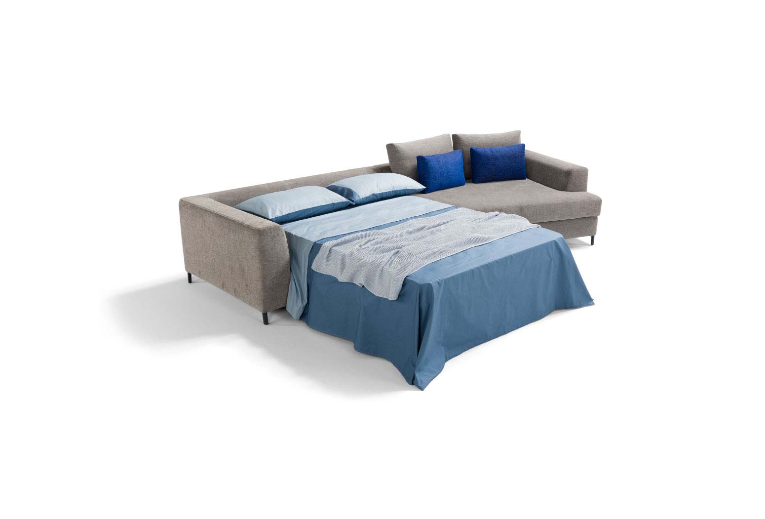 Rozkládací sofa Loy s plnohodnotnou postelí uvnitř, vhodná i pro každodenní spaní. Kvalitní dílenské zpracování, vhodný výběr materiálů a čistý skandinávský design dělá z této sofa pěkný kus nábytku. Kovové subtilní nohy podtrhují její elegantní vzhled.