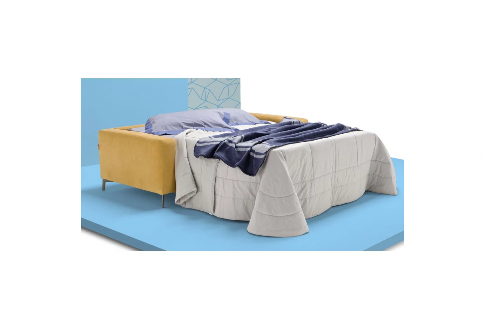 Rozkládací sofa Lisbona s plnohodnotnou postelí uvnitř, vhodná i pro každodenní spaní. Kvalitní dílenské zpracování, vhodný výběr materiálů a čistý skandinávský design dělá z této sofa pěkný kus nábytku. Kovové subtilní nohy podtrhují její elegantní vzhled.