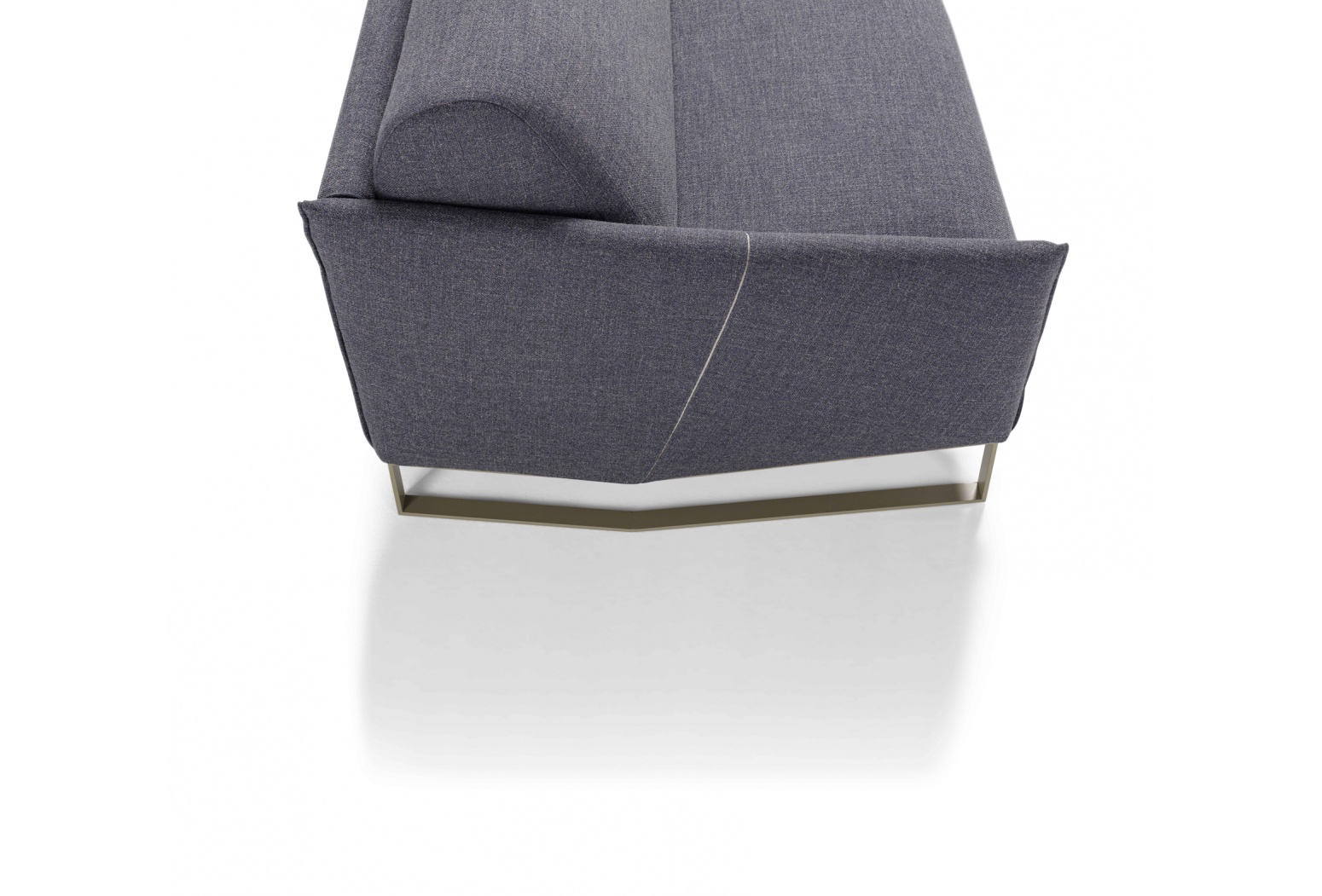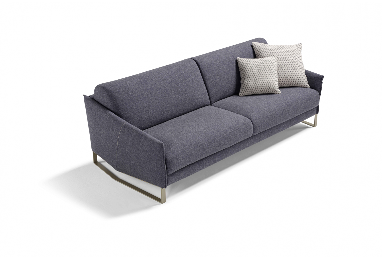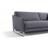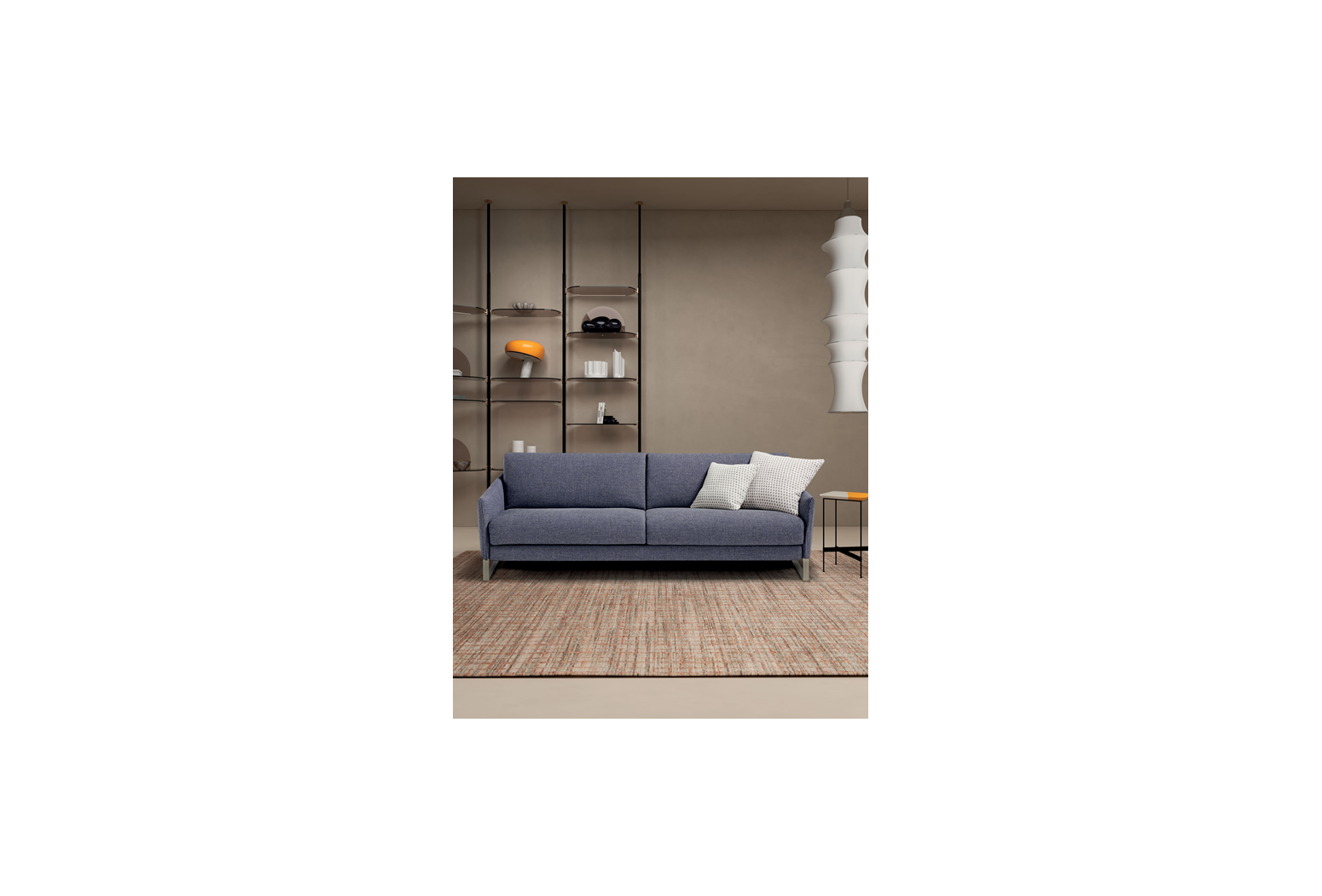 Rozkládací pohovka. Mechanismus: standardní kovový rošt. Konstrukce: smíšené dřevo (překližka a masivní dřevo) Standardní matrace: strečový polyuretan, hl.30 h 13 cm. Hustota sedáku: horní část 50 kg/m3 paměťová pěna, spodní část 30 kg/m3. Hustota opěradla: 25 kg/m3. Nohy: H 13 cm, dostupné v různých kovových povrchových úpravách. Volitelně: matrace, dřevěné rošty. Čalounění: kompletně snímatelný potah. Dva polštáře Model D24 ve stejné barvě a kategorii jako pohovka. K dispozici ve verzi bez postele.