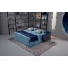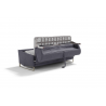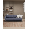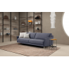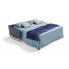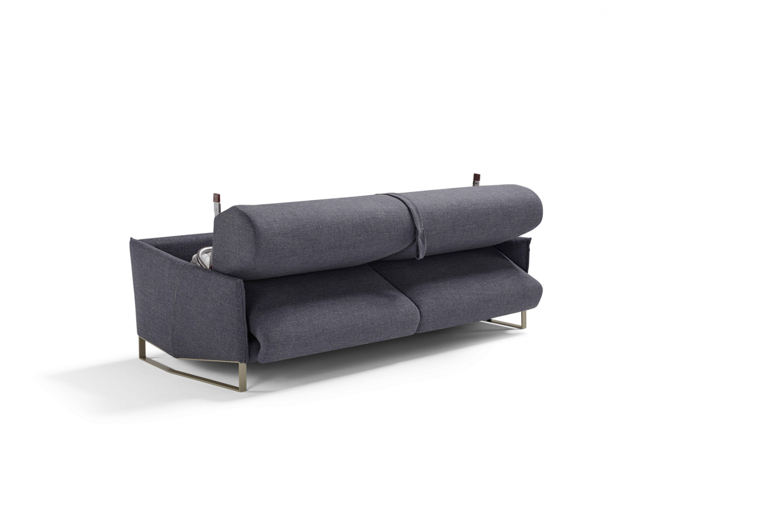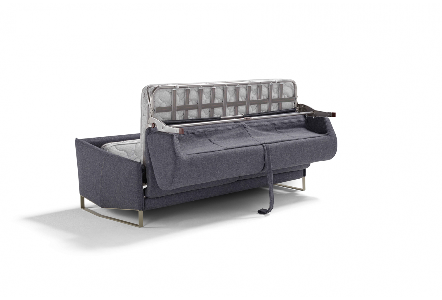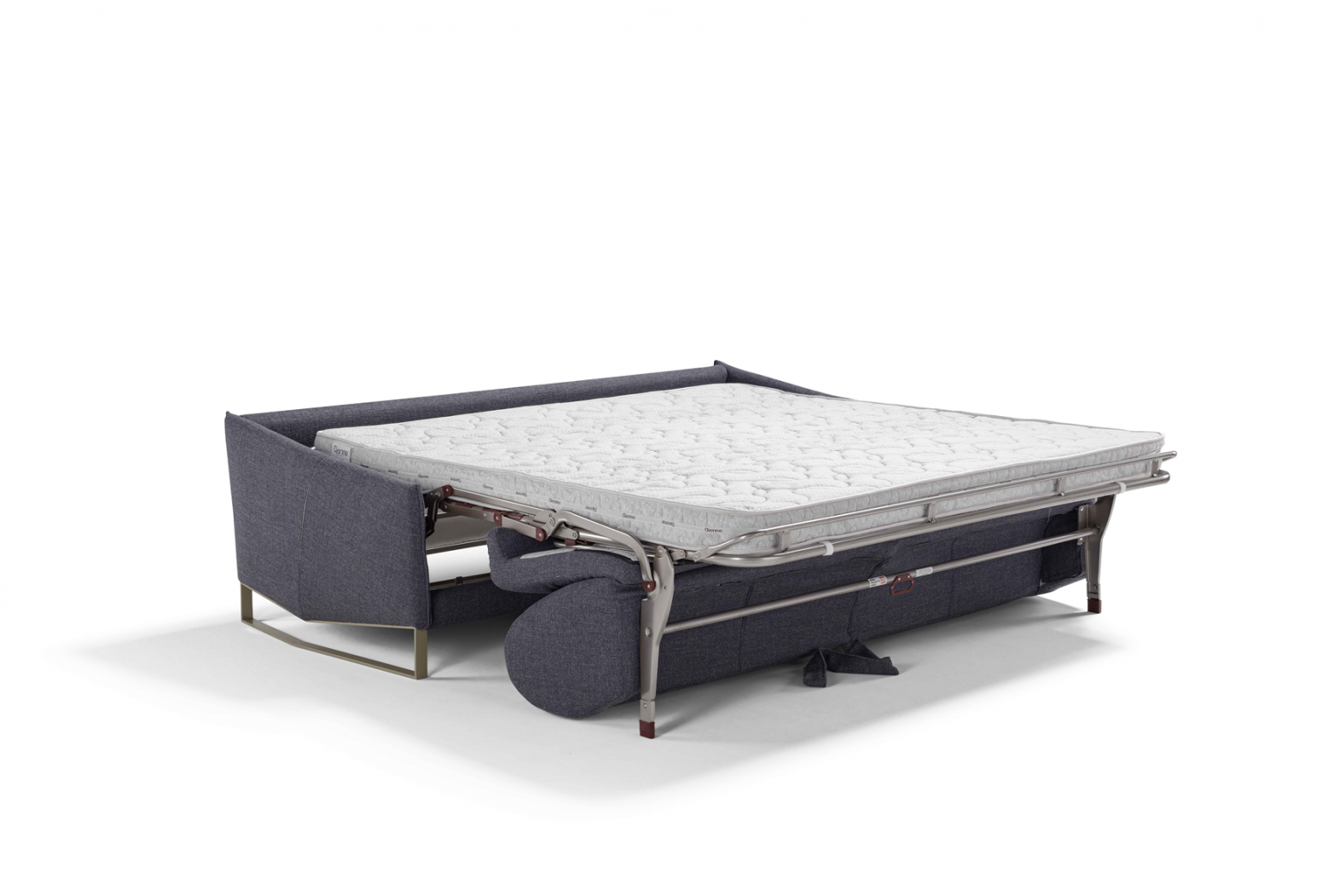 Rozkládací pohovka. Mechanismus: standardní kovový rošt. Konstrukce: smíšené dřevo (překližka a masivní dřevo) Standardní matrace: strečový polyuretan, hl.30 h 13 cm. Hustota sedáku: horní část 50 kg/m3 paměťová pěna, spodní část 30 kg/m3. Hustota opěradla: 25 kg/m3. Nohy: H 13 cm, dostupné v různých kovových povrchových úpravách. Volitelně: matrace, dřevěné rošty. Čalounění: kompletně snímatelný potah. Dva polštáře Model D24 ve stejné barvě a kategorii jako pohovka. K dispozici ve verzi bez postele.