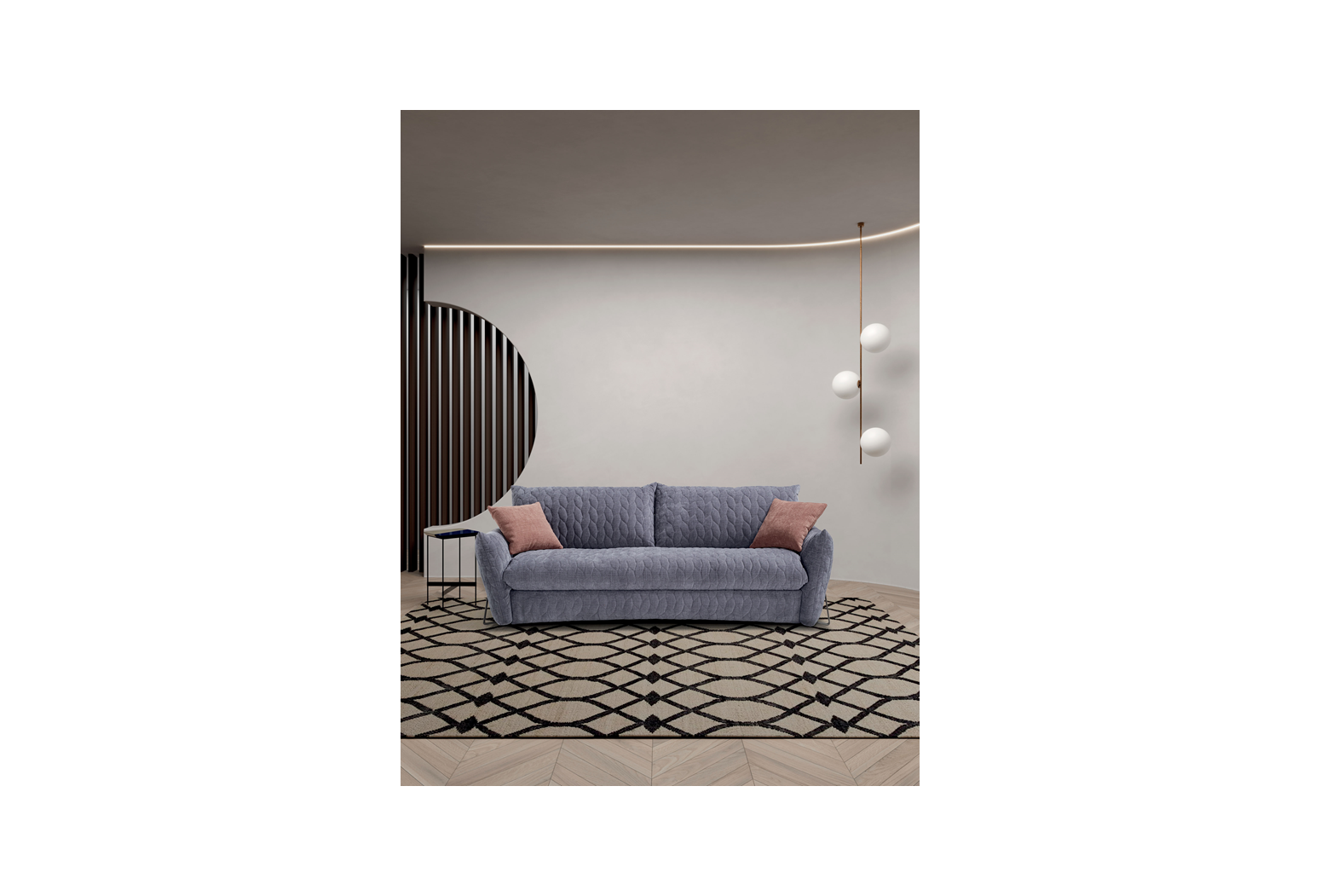 Rozkládací prošívaná pohovka. Mechanismus: standardní kovový rošt. Konstrukce: smíšené dřevo (překližka a masivní dřevo). Standardní matrace: strečový polyuretan D.30 h 13 cm. Hustota sedáku: horní část z husího peří, spodní část 35 kg/m3. Hustota opěradla: v husím peří. Nohy: dostupné v různých kovových povrchových úpravách. Volitelně: matrace, dřevěné rošty a spací mechanismus s kolečky. * (Paměťové a 2 pěnové matrace jsou dostupné pouze pro model s kovovým roštem). Čalounění: prošívaný, snímatelný látkový potah. Prošívání lze vyžádat u všech dostupných látek kromě referencí „Maracaibo Geometrico“ a „Nuvole Fantasia“. Dva polštáře Model D24 ve stejné barvě a kategorii jako pohovka (neprošívané). K dispozici ve verzi bez postele.