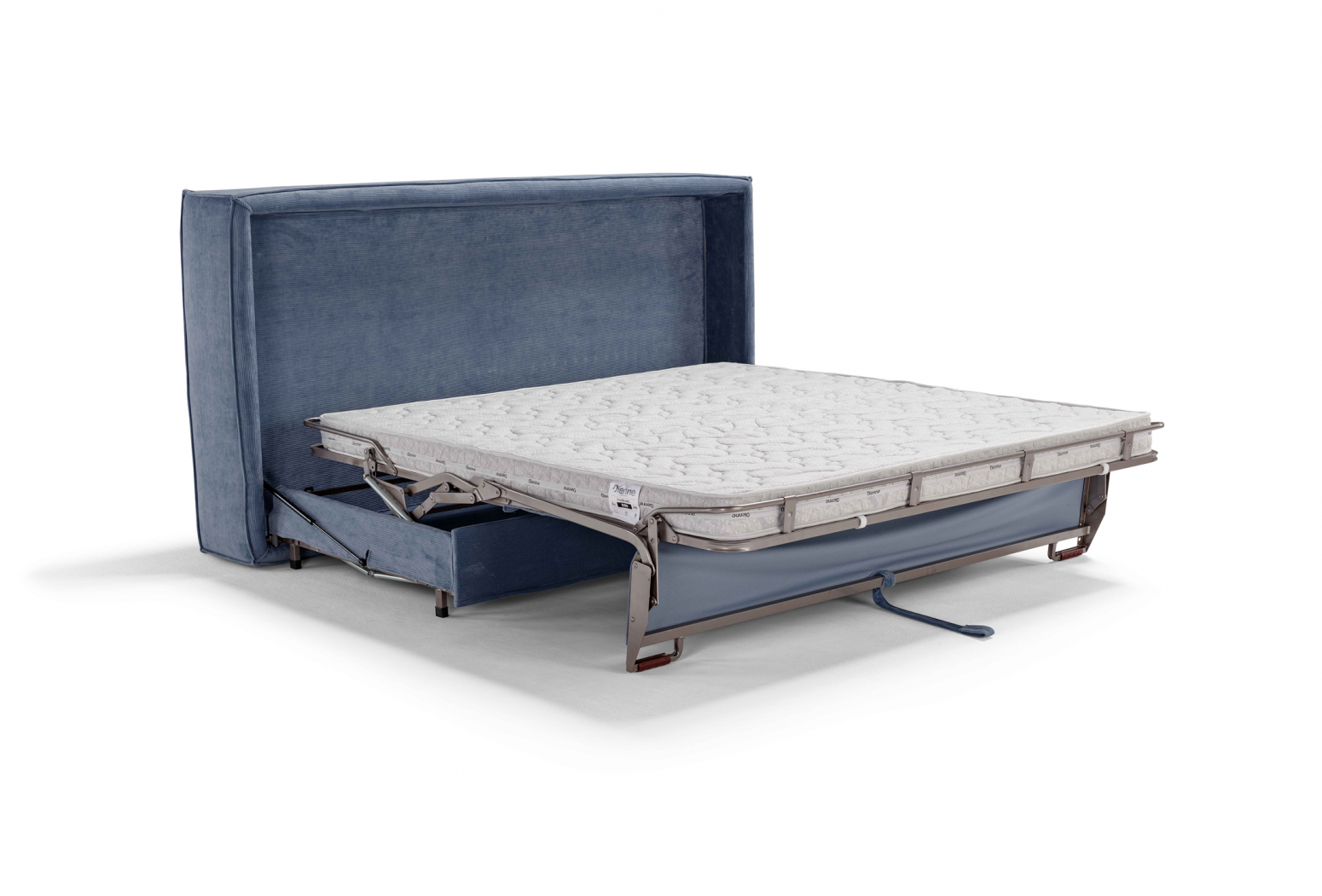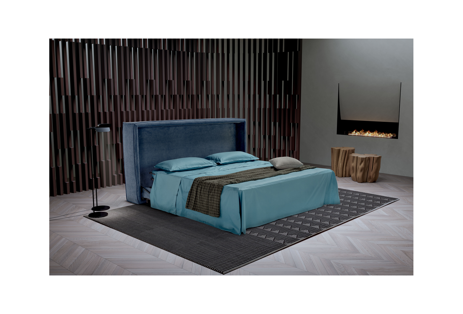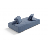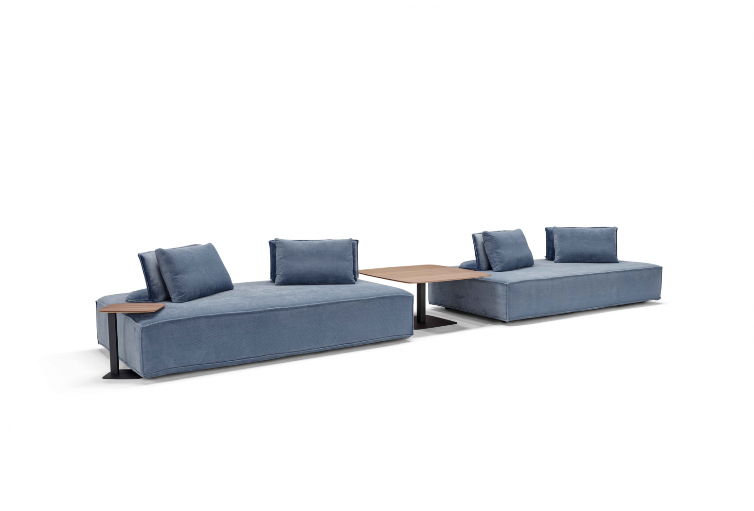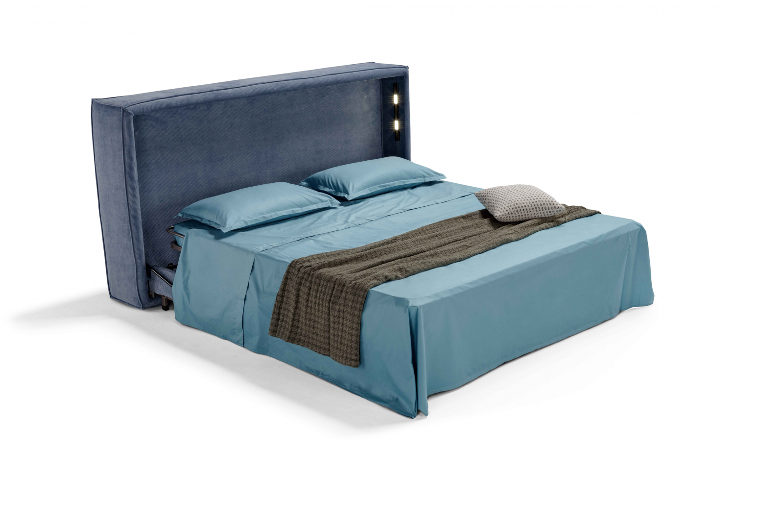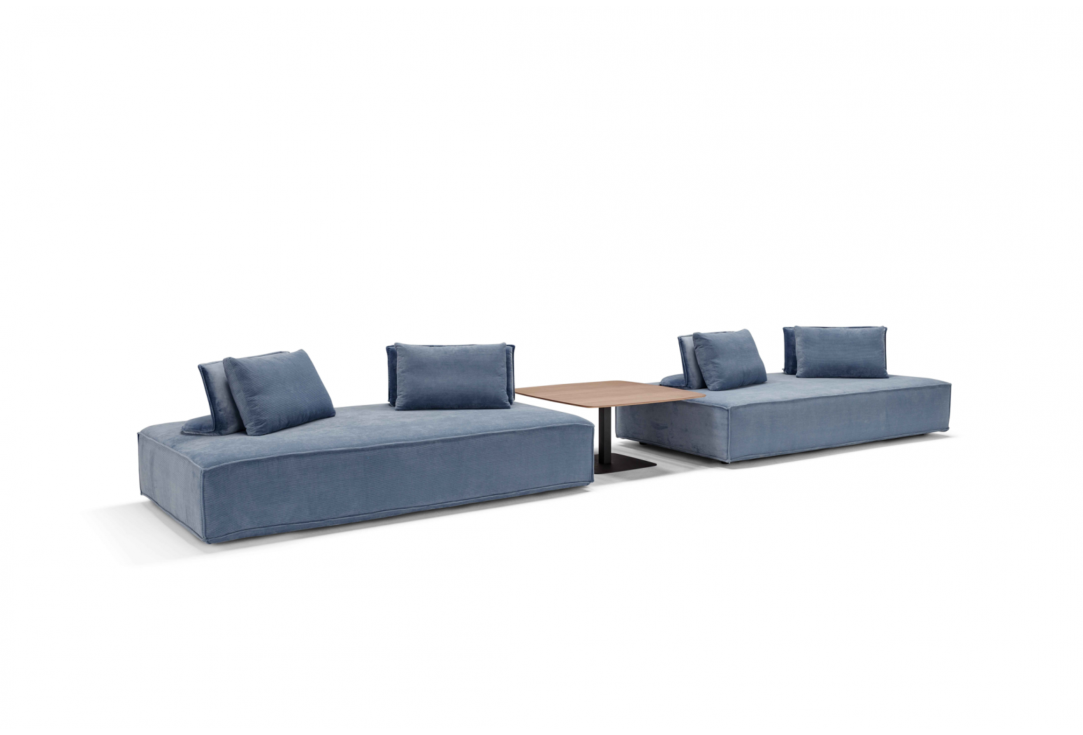 Rozkládací pohovka se dvěma plovoucími opěradly. Mechanismus: standardní kovový rošt. Konstrukce: osazena kovovou částí s posilovačem, sestavená s vnějšími částmi ze smíšeného dřeva (překližka a masivní dřevo) pomocí bajonetových spojů. Standardní matrace: strečový polyuretan, H.30 h 13 cm. Hustota sedáku: 45 kg/m3 Hustota opěradla: husí peří. Nohy: černý plast. Volitelně: přídavné opěradlo, dřevěné rošty, matrace a stůl BREAK, s kovovou podpěrou a dřevěnou deskou stolu k dispozici v povrchové úpravě „Canaletto Walnut“ nebo „Natural Oak“. Čalounění: kompletně snímatelný potah. K dispozici ve verzi bez postele.