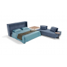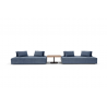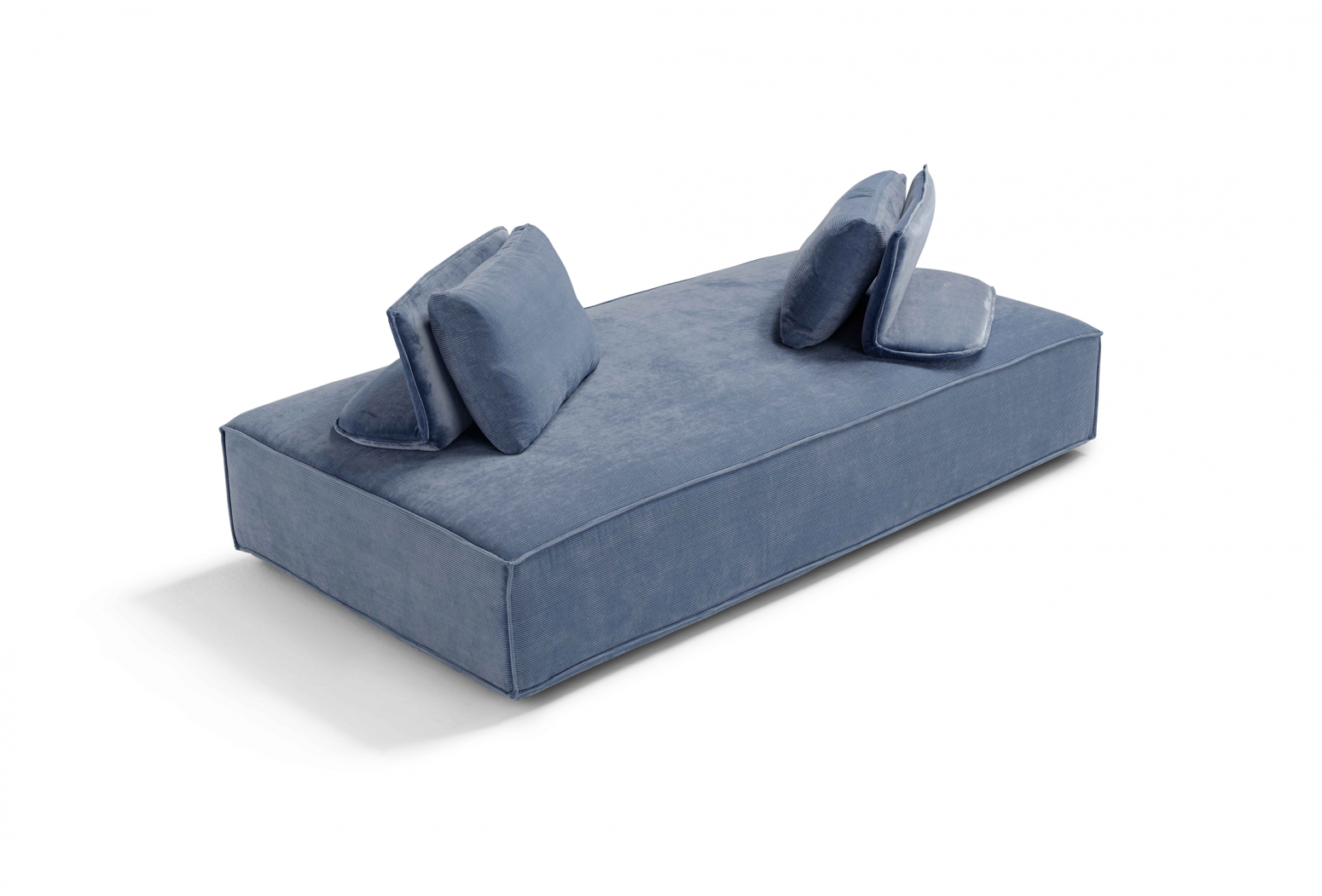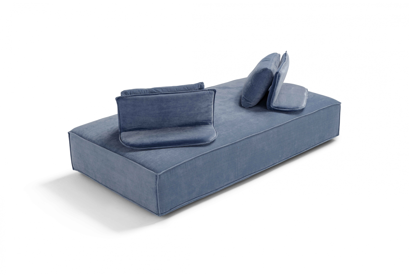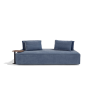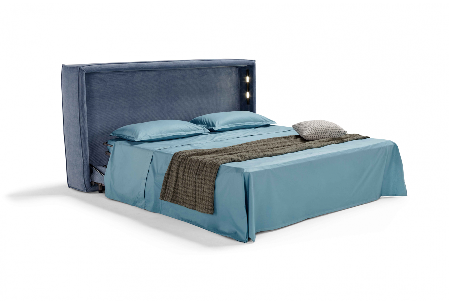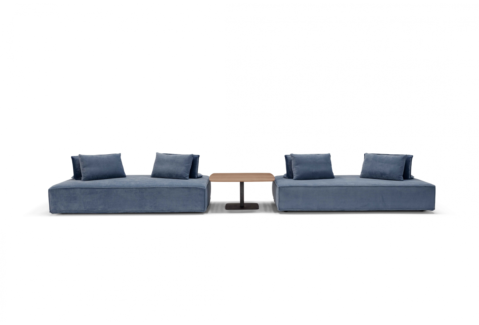 Rozkládací pohovka se dvěma plovoucími opěradly. Mechanismus: standardní kovový rošt. Konstrukce: osazena kovovou částí s posilovačem, sestavená s vnějšími částmi ze smíšeného dřeva (překližka a masivní dřevo) pomocí bajonetových spojů. Standardní matrace: strečový polyuretan, H.30 h 13 cm. Hustota sedáku: 45 kg/m3 Hustota opěradla: husí peří. Nohy: černý plast. Volitelně: přídavné opěradlo, dřevěné rošty, matrace a stůl BREAK, s kovovou podpěrou a dřevěnou deskou stolu k dispozici v povrchové úpravě „Canaletto Walnut“ nebo „Natural Oak“. Čalounění: kompletně snímatelný potah. K dispozici ve verzi bez postele.