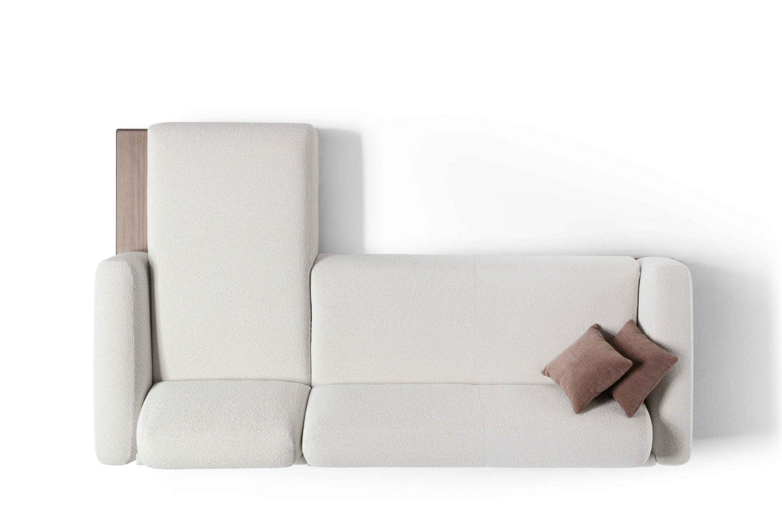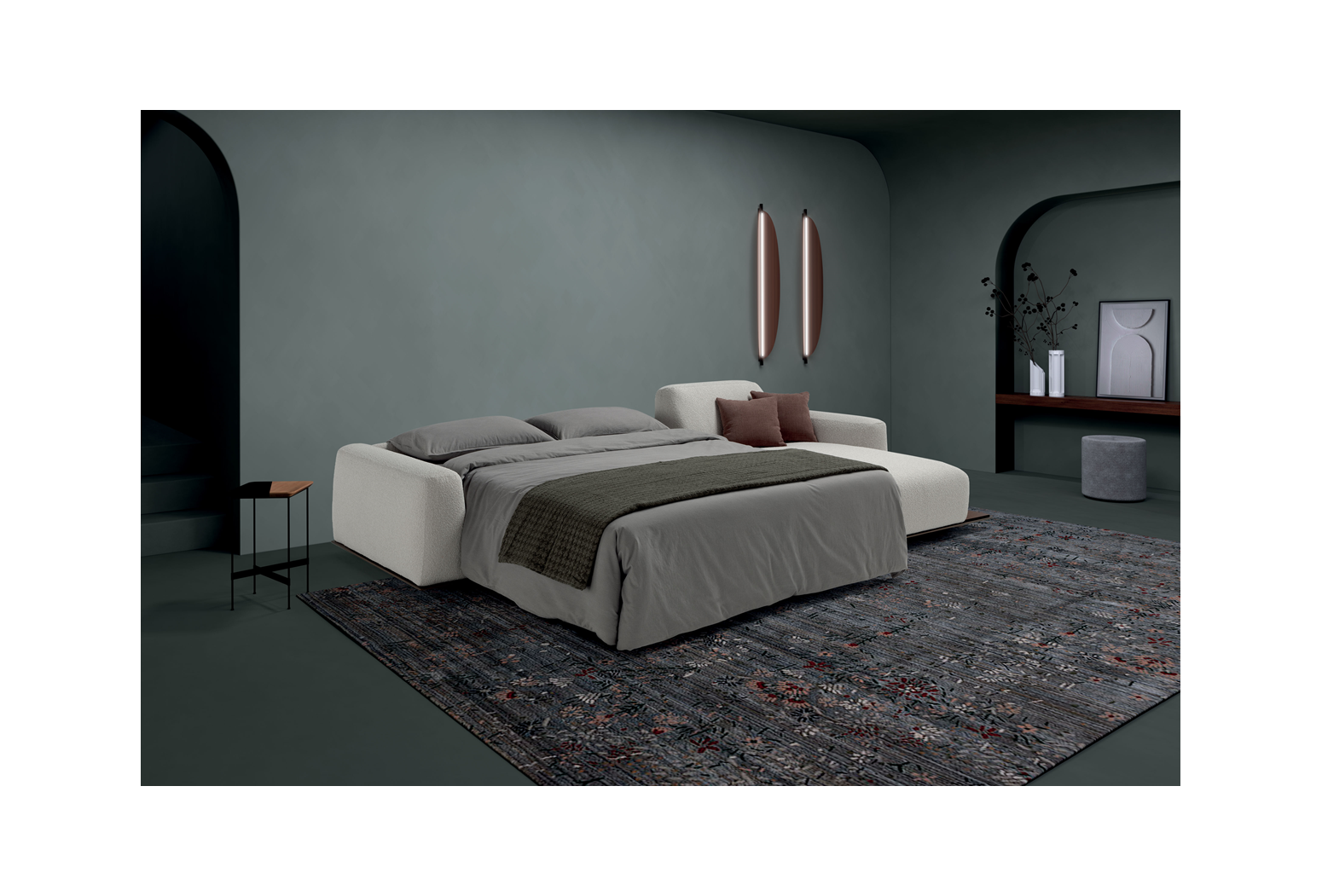 Rozkládací pohovka. Mechanismus: standardní kovový rošt. Konstrukce: smíšené dřevo (překližka a masivní dřevo). Standardní matrace: strečový polyuretan, H.30 h 13 cm. Hustota sedáku: horní část 40 kg/m3 paměťová pěna, spodní část 35 kg/m3. Hustota opěradla: 24 kg/m3. Sokl: k dispozici v různých kovových povrchových úpravách. Volitelně: matrace, dřevěné rošty a spací mechanismus s kolečky k dispozici pouze pro verze 4000, 3500, 3000, 2500. Čalounění: kompletně snímatelný potah. Dva polštáře Model D24 ve stejné barvě a kategorii jako pohovka. Top Chaise Longue k dispozici v různých povrchových úpravách. K dispozici ve verzi bez postele.