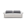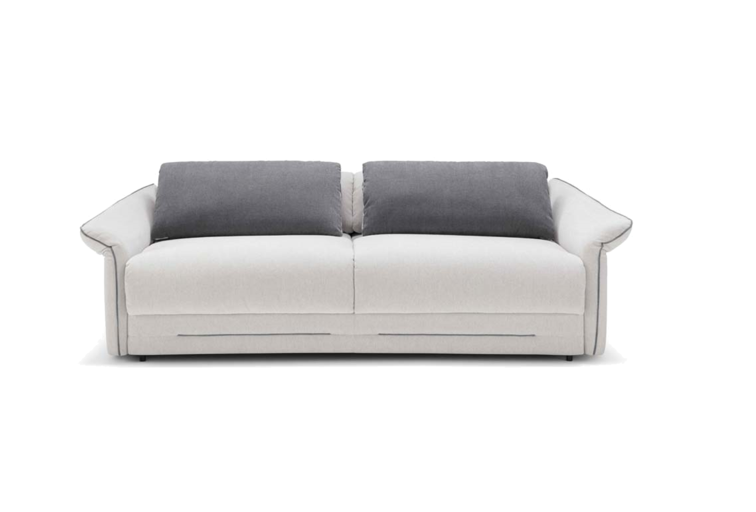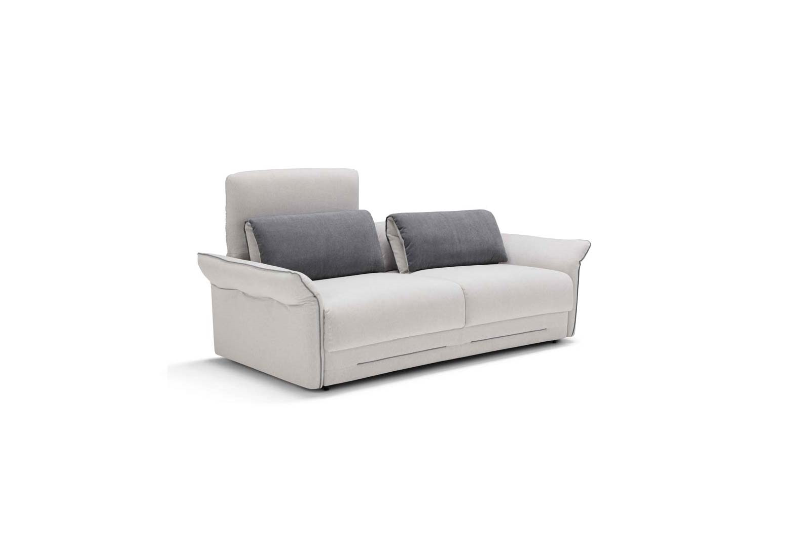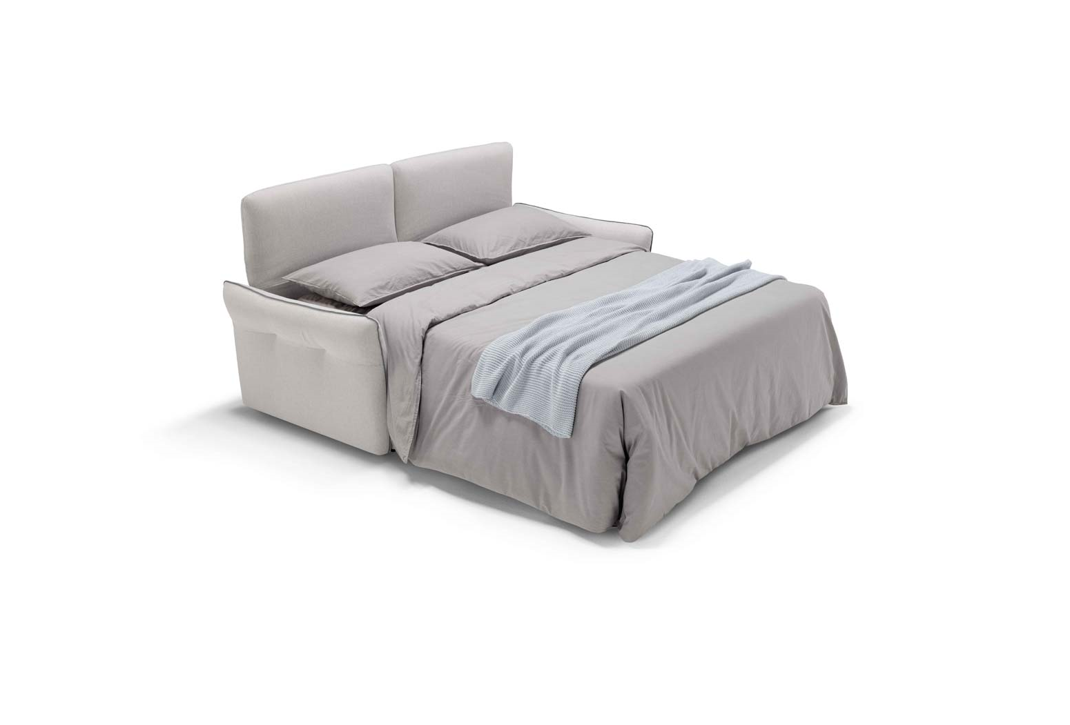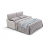 Rozkládací pohovka se spodními polštáři. Mechanismus: standardní kovový rošt. Konstrukce: smíšené dřevo (překližka a masivní dřevo). Nastavitelné opěrky zad a područek. Standardní matrace: strečový polyuretan, H.30 h 16 cm. Hustota sedáku: horní část 30 kg/m3, spodní část 30 kg/m3. Hustota opěradla: 25 kg/m3. Nohy: černý plast. Volitelné: matrace. Čalounění: kompletně snímatelný potah. K dispozici ve verzi bez postele.