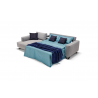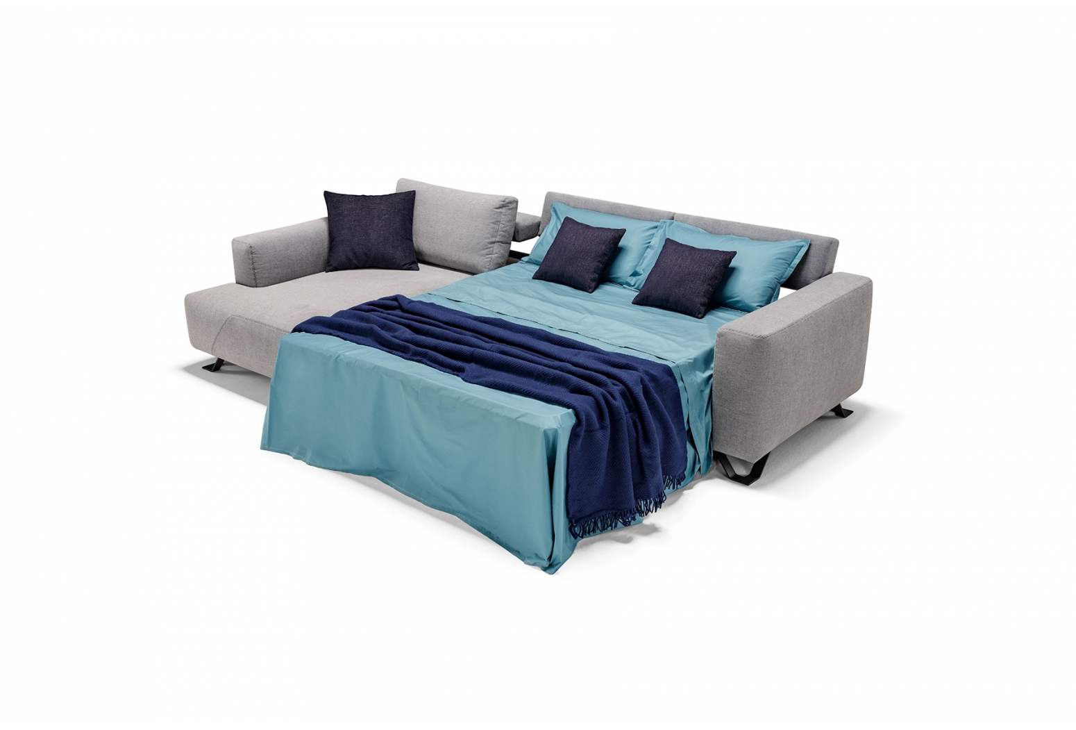 Rozkládací pohovka. Mechanismus: standardní kovový rošt bez držáku polštáře. Struktura: dřevěný aglomerát, překližka a jedlové latě.Standardní matrace: strečový polyuretan D.35HR h 13 cm. Sedák: polyuretanová hustota 30 kg/m3. Osazení: hustota polyuretanu 24 kg/m3. Nohy: černé kov. Volitelně: prošívání, lamelový rošt, mechanismus s kolečky a matracemi *(kapsové matrace Topper Memory a DN dostupné pouze pro verze s kovovým roštem). Čalounění: plně snímatelná látka, volitelné prošívání představuje model částečně prošívaný, prošívání lze požadováno u všech látek v našem vzorníku kromě článků „Maracaibo Geometrico a Nuvole Fantasia“. Dva polštáře modelu D24 (neprošívané) ve stejné barvě a kategorii jako pohovka. K dispozici ve verzi bez postele.