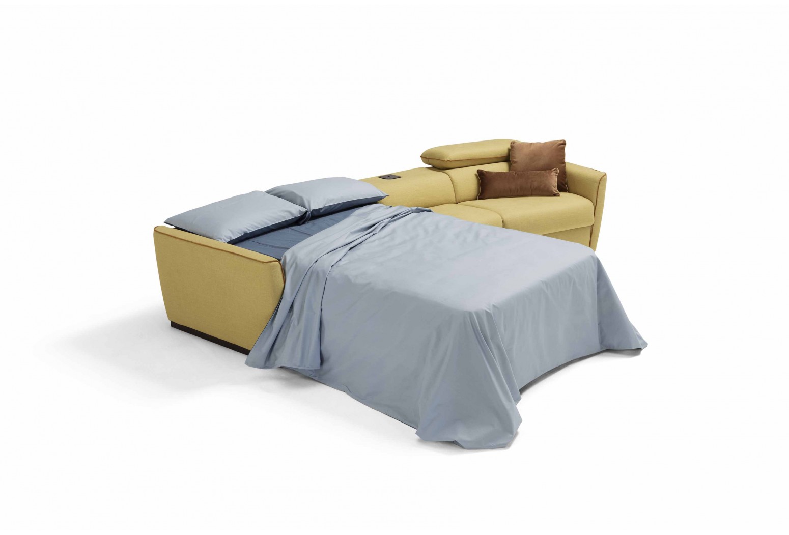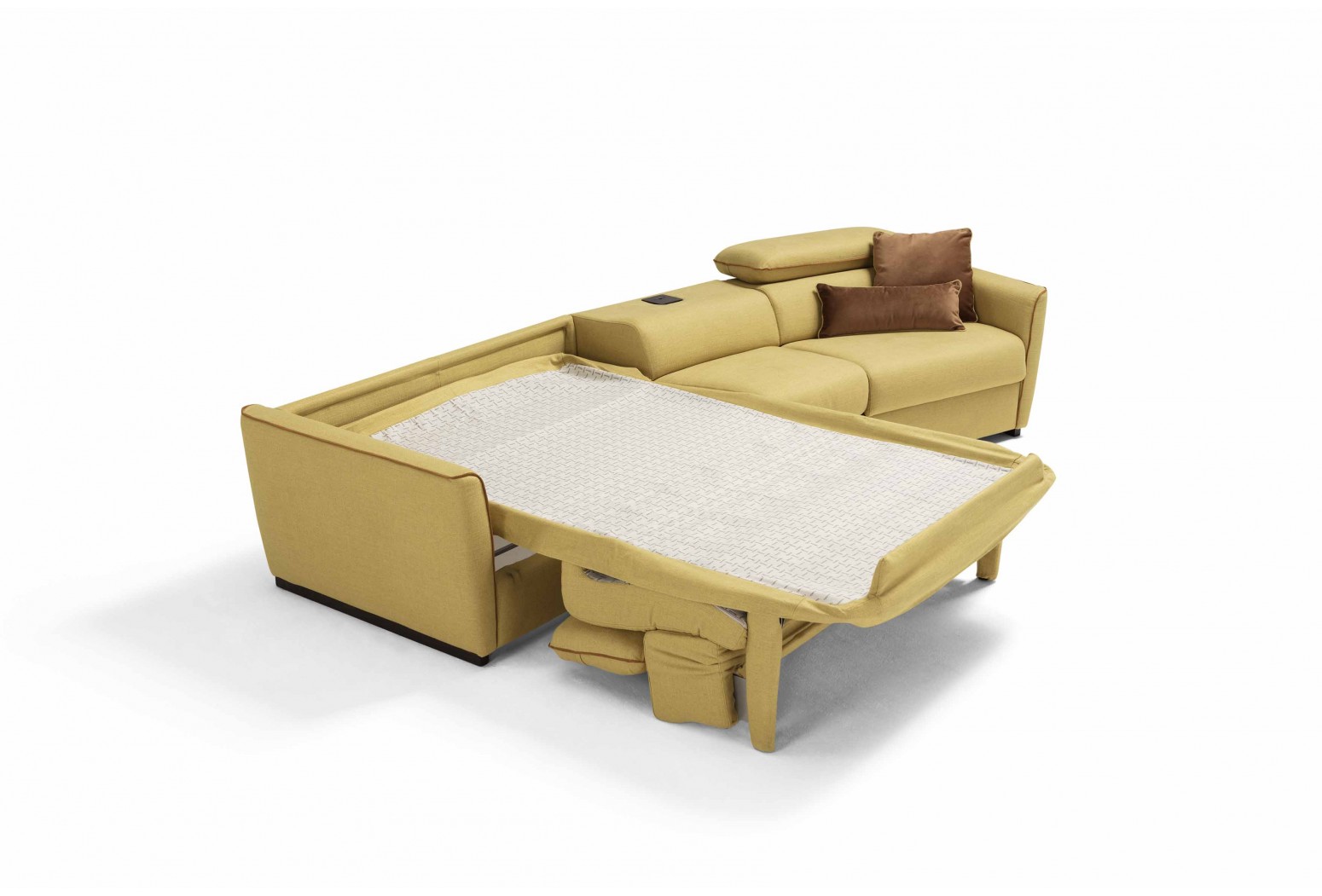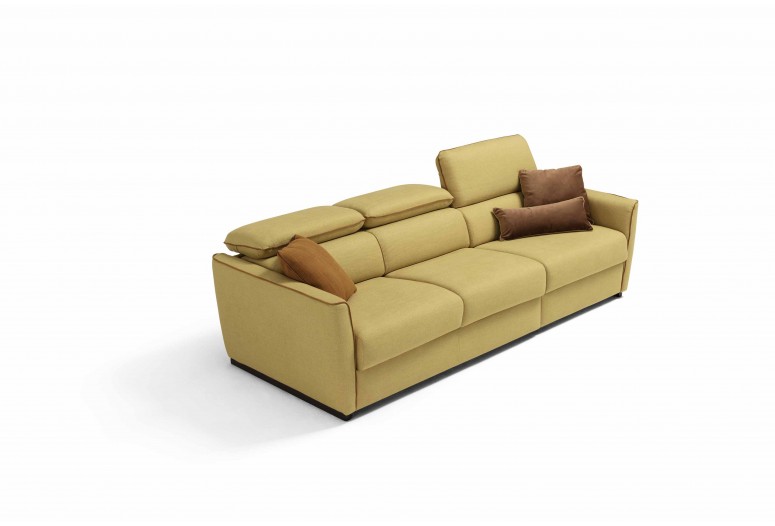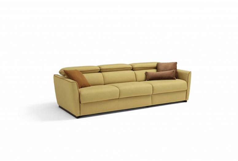 Mechanismus: rozkládací rozkládací pohovka se standardní elektricky svařovanou síťovinou. Polstrování: standardní strečový polyuretan o průměru 30 cm a výšce 13 cm. Sedák: hustota 35 kg/m3. Opěradlo: hustota 28 kg/m3. Nohy: dřevěné, dostupné v různých povrchových úpravách. Volitelné: k dispozici ve verzi bez postele. Možnost objednat model s lamelami a kolečkovým mechanismem. Matrace k dispozici. *(Matrace Topper Memory a 2 pěnové matrace k dispozici pouze pro verzi s elektricky svařovaným roštem postele). Volitelné „bezdrátové“ polohovací prvky, které umožňuje otevírání a zavírání pohovky dálkovým ovládáním; volitelné „polohovací polohovací zařízení s klávesnicí“ se spínačem umístěným vně loketní opěrky (volitelná možnost není k dispozici u modelu Paganini). Volitelné „elektrické polohovací polohovací zařízení“, kde se otevírání provádí pomocí kabelového dálkového ovládání. Manuální model je standardní pro polohovací zařízení, která se otevírají pomocí kliky skryté mezi sedákem a loketní opěrkou. Pro hranatý rohový prvek (kód 5000) a lichoběžníkové křeslo (kód 1007) je k dispozici volitelná „sada pro ozvučení pohovky“, která umožňuje poslech hudby prostřednictvím připojení smartphonu přes Bluetooth, Lightning konektoru pro iPhone a iPad nebo USB vstupu. Trapézový prvek poltrona (kód 1007) je k dispozici s držákem na nápoje. Čalounění: plně odnímatelná látka. Částečně odnímatelná kůže. Dva bezplatné polštáře modelu D24 ve stejné barvě a kategorii jako pohovka. U kožených pohovek nejsou bezplatné polštáře D24 součástí balení.