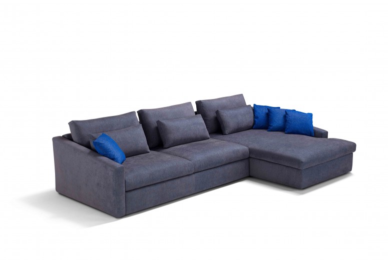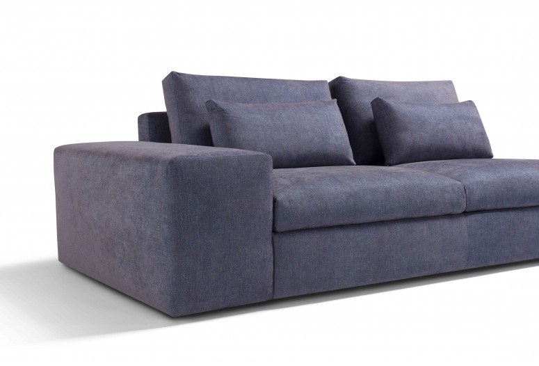 Modulární rozkládací pohovka s možností úpravy s úložným prostorem v rohu, na meridienne a v lenošce. Opěradla z husího peří, sedák z paměťové pěny a tři typy područek kombinují pohodlí a všestrannost.