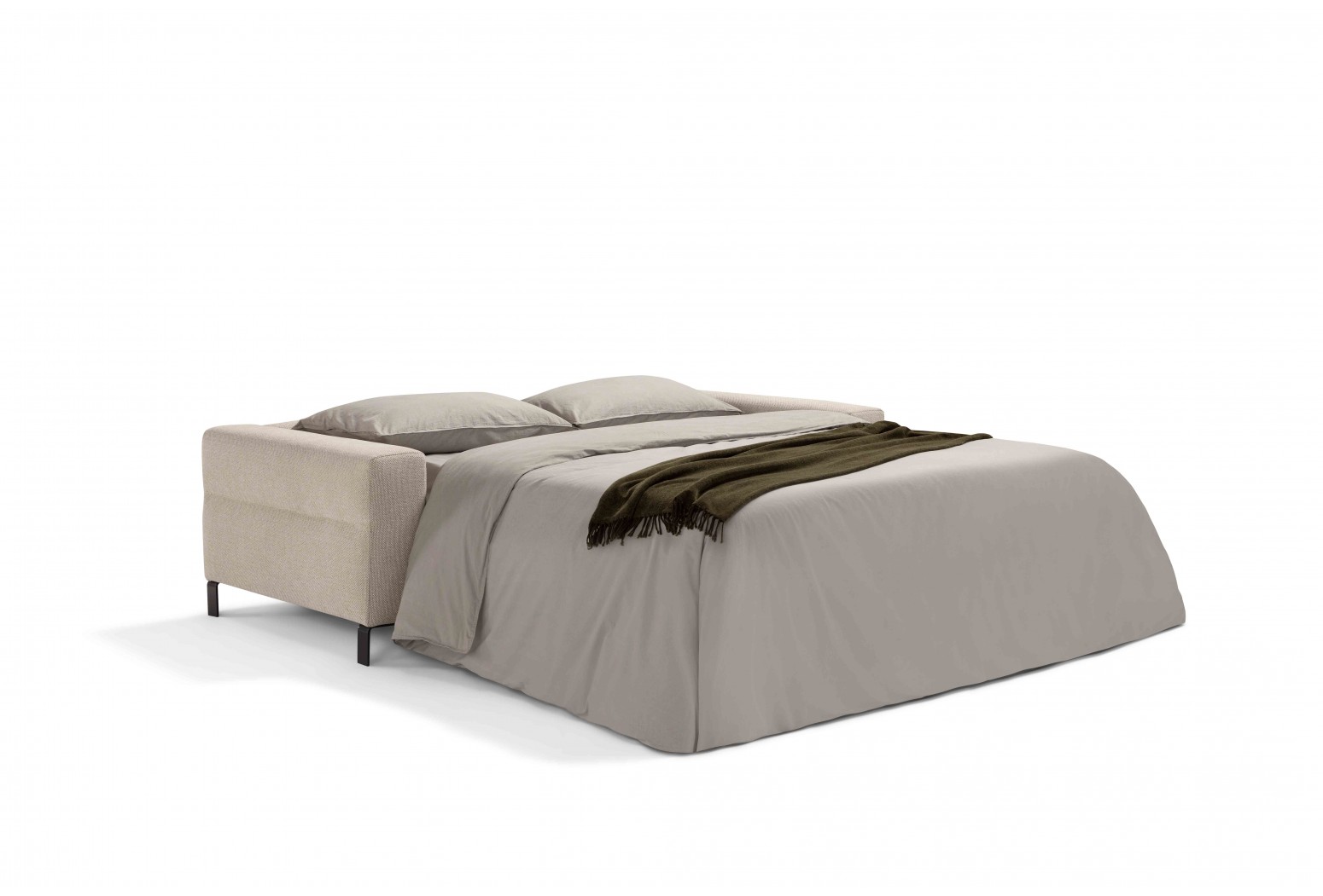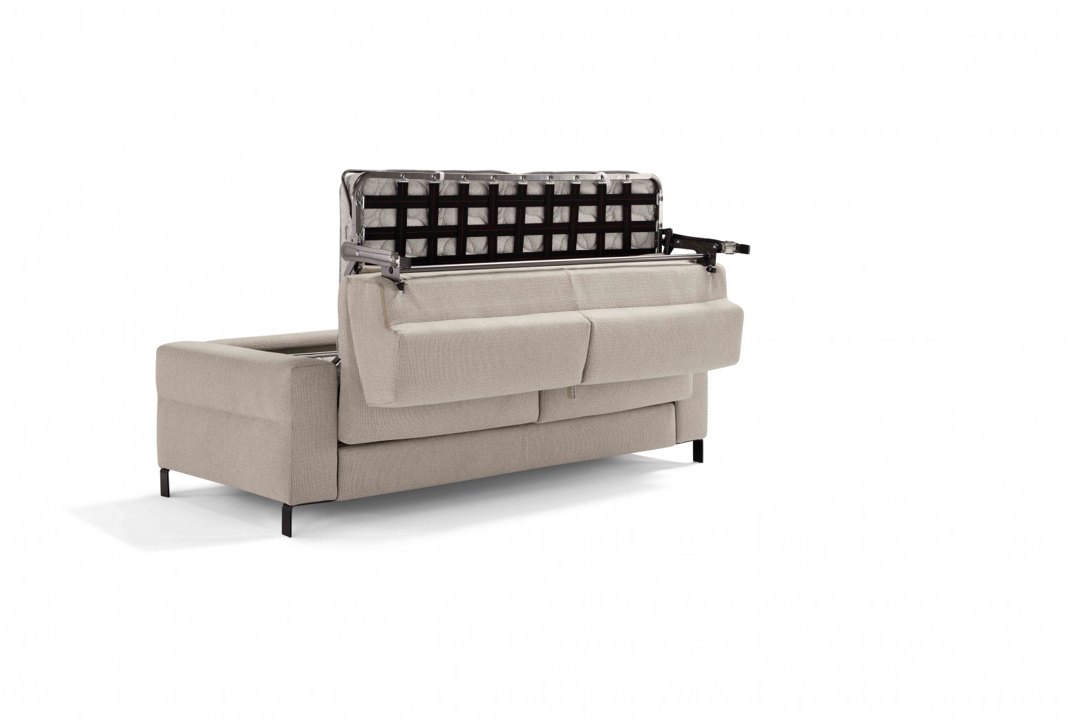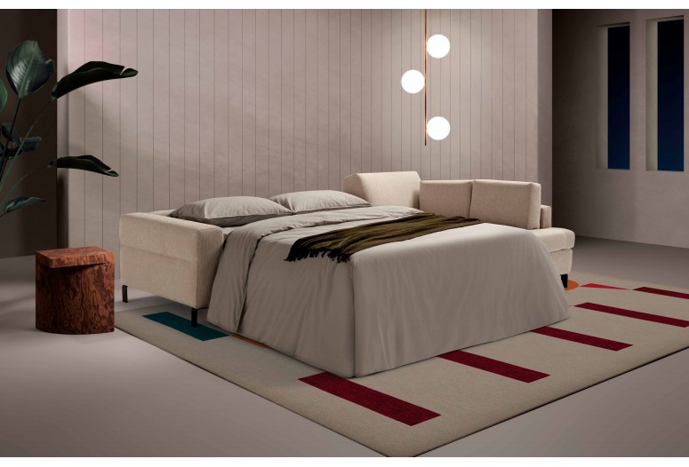 Rozkládací pohovka s prvkem meridienne. Matrace o šířce 13 cm a délce 210 cm poskytuje prodloužený odpočinek v designu, který kombinuje funkčnost a styl.