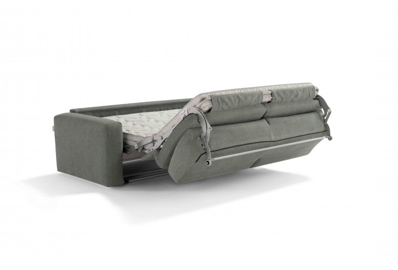 Rozkládací pohovka s matrací o šířce 13 cm a elektrickým otevíráním, které jednoduchým pohybem promění pohovku v postel. Inovativní design, který elegantním způsobem kombinuje praktičnost a pohodlí.