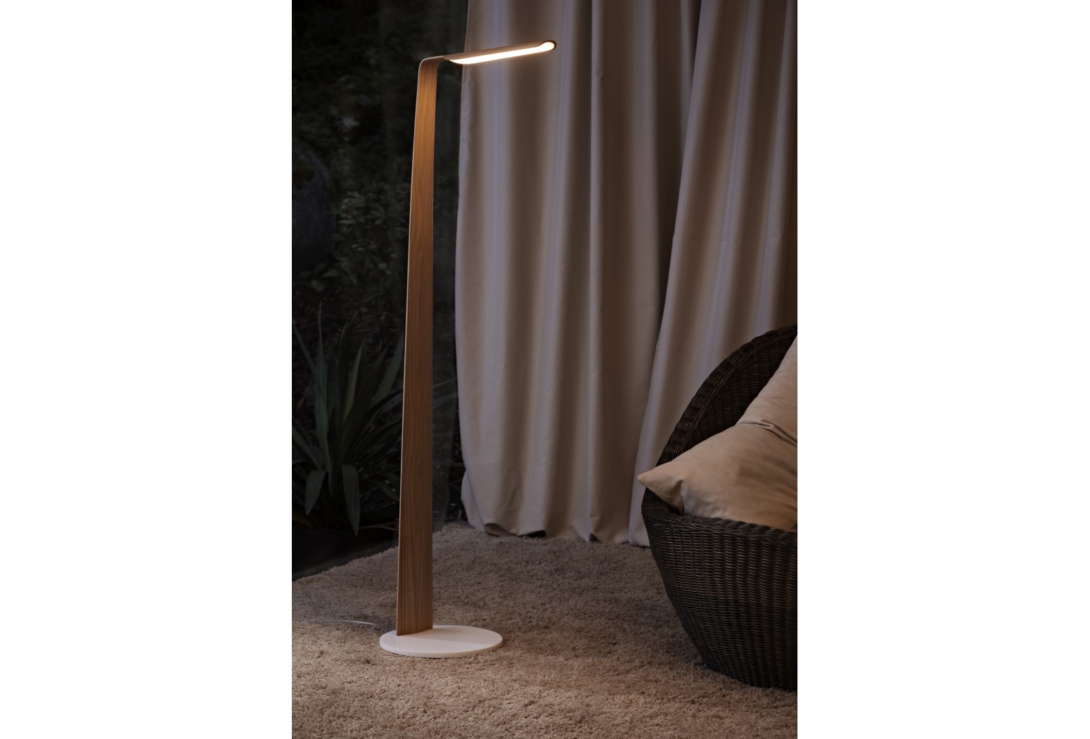 Swan je elegantní a zároveň štíhlá stojací lampa. Elegance ohýbaného dřeva se hodí do různých typů interiérů. Bezdotykový ovladač je stylově ukryt v těle lampy.