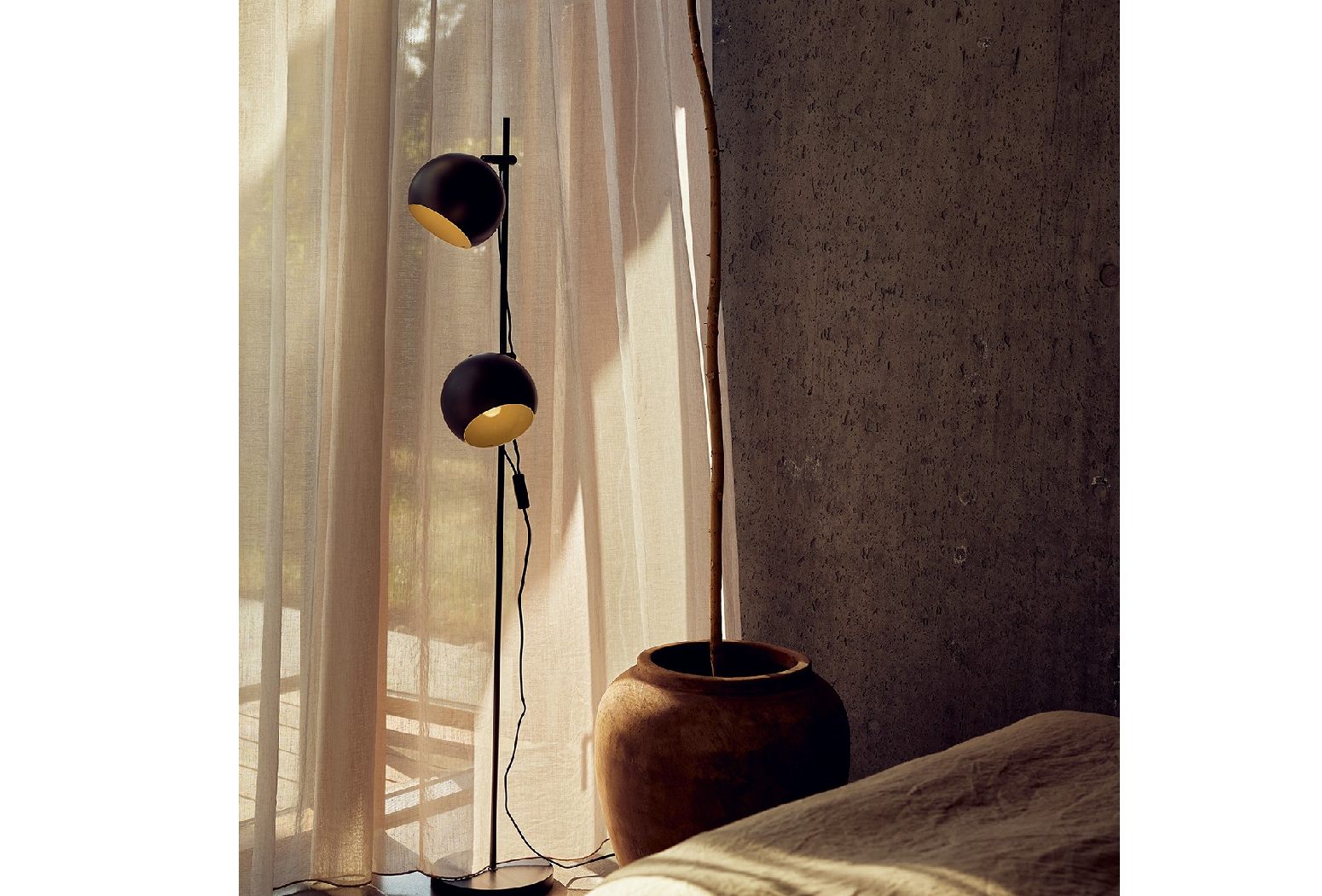 Stojací lampa Ball Double je ideální jako čtecí lampa vedle pohovky nebo křesla. Lampa má dvě stínidla, takže se perfektně hodí k umístění mezi dvě sedadla – například mezi dvě křesla. Poskytuje vynikající světlo pro čtení a díky otočným stínidlům lze světlo natočit libovolným směrem. Výšku obou stínidel lze nastavit jednoduše povolením šroubů.