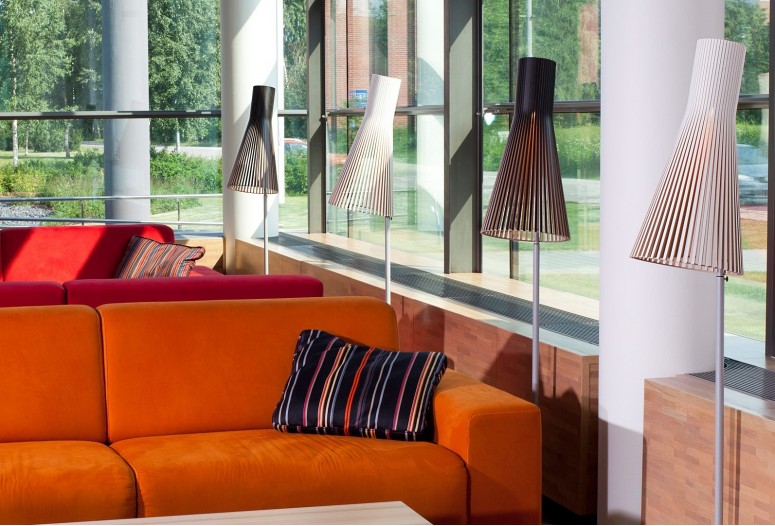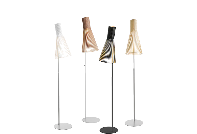 Kolekce designových lam Secto je navržena finským interiérovým architektem Seppo Koho. Stínítka jsou vyrobeny z vrstvených březových lamel spojených balzovým kroužkem.